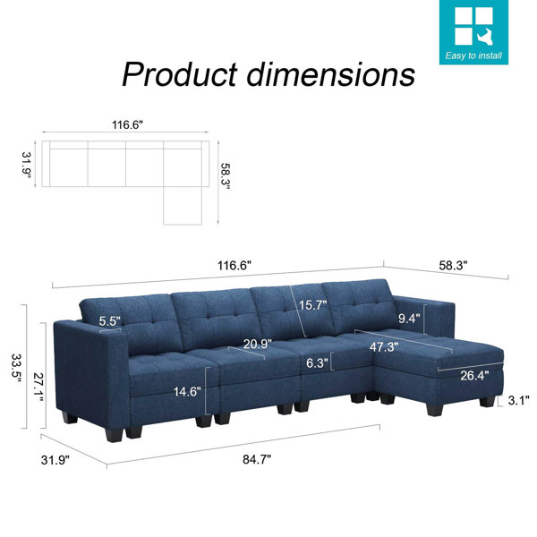 - Designs of Open Combination: The modular sectional sofa is composed of multiple different parts that can be gathered into any desired form. It allows for any size living area, fulfilling the different needs of your space.