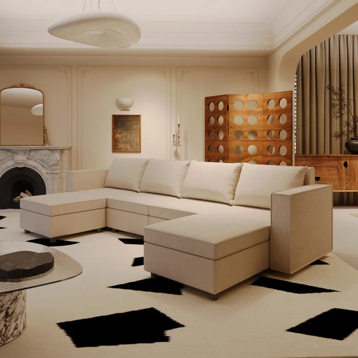 It seven-seater sofa set expands support and ability to adapt with its 116-inch wide, six-piece modular sectional, combining ottoman, and built-in storage. This cutting-edge leather sofa set, made for comfortable living areas, offers the best probable relaxing experiences by combining today design with practicality. This seven-seater sofa set, and that is made with high-quality fabric and durable foam cushions, provides individuals and visitors with outstanding support and comfortable seating. If you're extending out for a movie night or setting up an affair, you can organize each piece to fit into the available space due to the modular design. This seven-seater modular sofa set fits in entirely with any modern decor due to its clean design, soft colors, and open organization.
