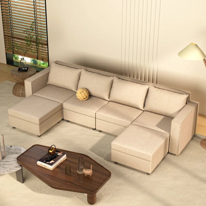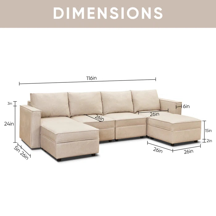 7 Seater Sofa Set: 116" Modular Upholstered Sectional with Ottoman
