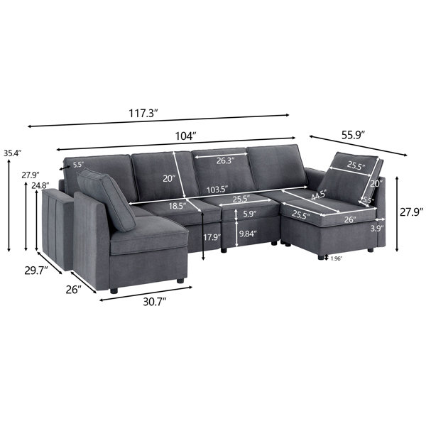 7 Seater Sofa Set: 117.3" Modular Sectional Sofa with Multiple Combinations