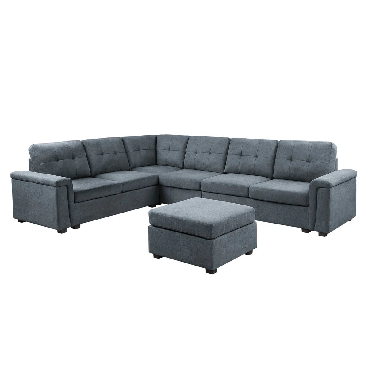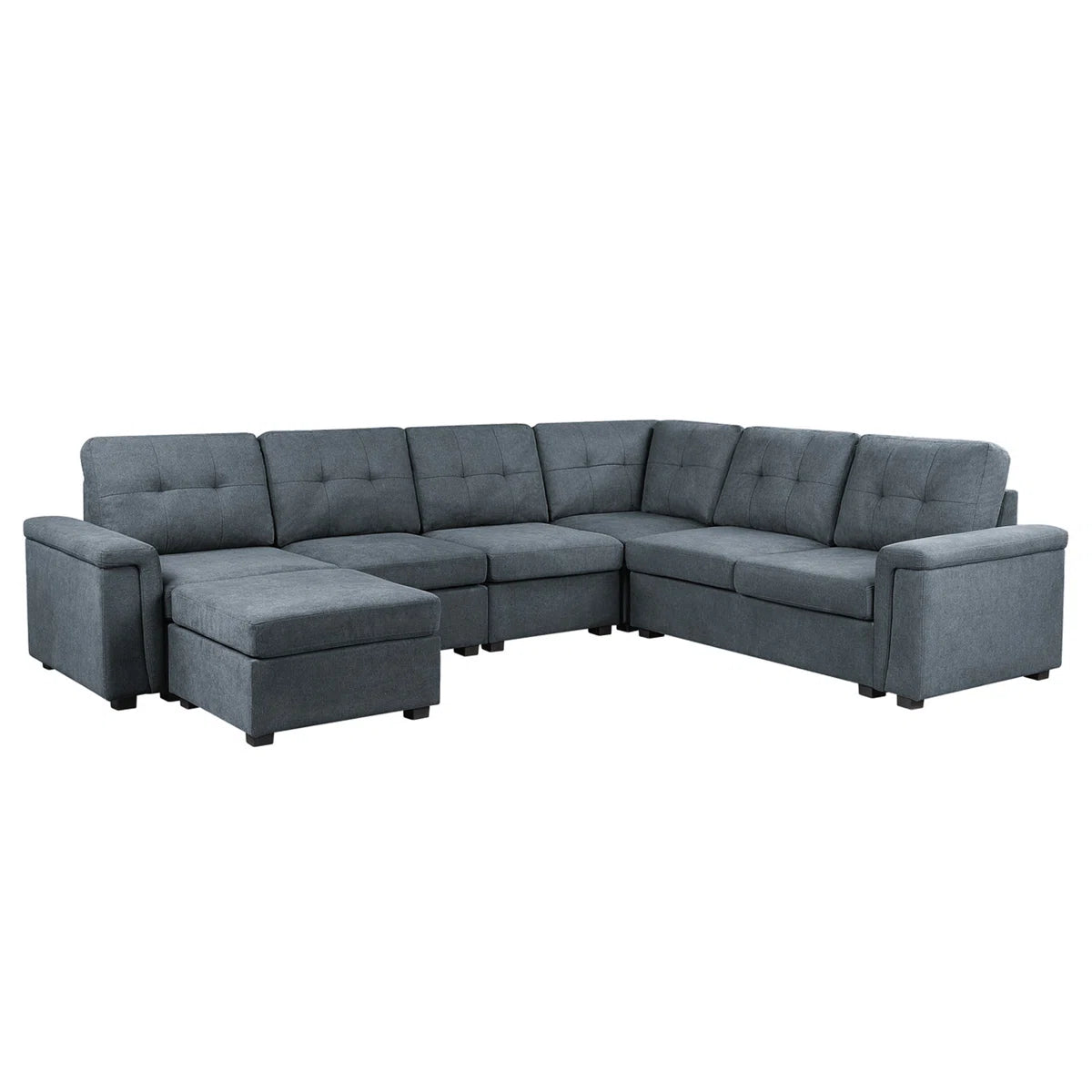 7 Seater Sofa Set: 119" Gray Woven Fabric 7-Seater Sectional Sofa