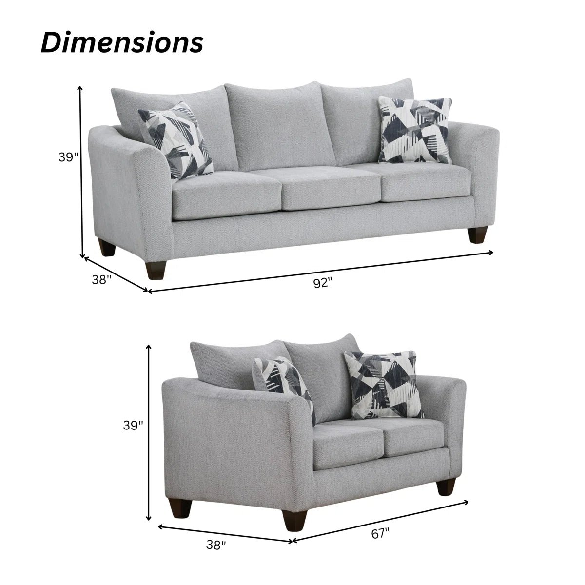 Loveseat 39'' H X 67'' W X 38'' D