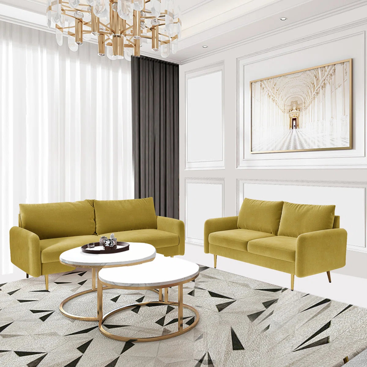 7 Seater Sofa Set: 2-Piece Velvet Living Room Furniture for Modern Comfort
