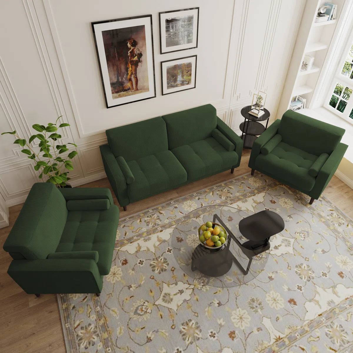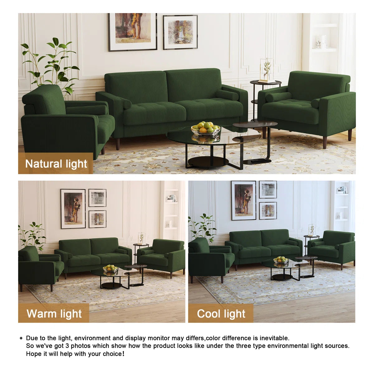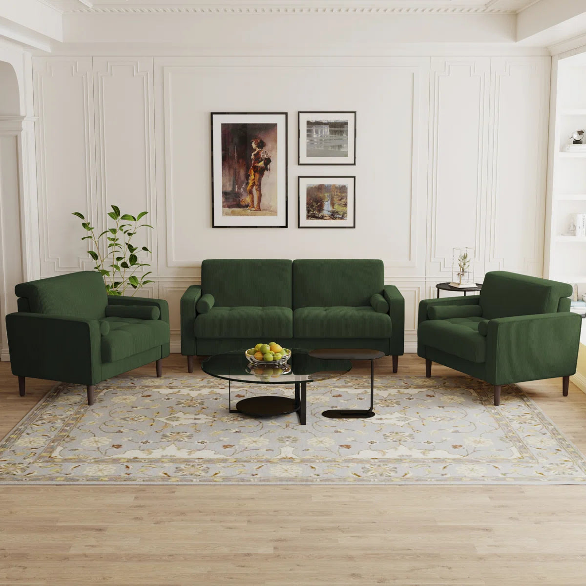 Bring cozy charm to your home with this 3-piece corduroy living room set, perfectly suited as a 7 seater sofa set. Featuring a soft and textured finish, this set includes a 3-seater sofa, 2-seater loveseat, and a matching armchair — offering spacious, relaxed seating for family and guests. The warm corduroy fabric adds a casual yet stylish touch to any living room, making it both inviting and durable for everyday use.
