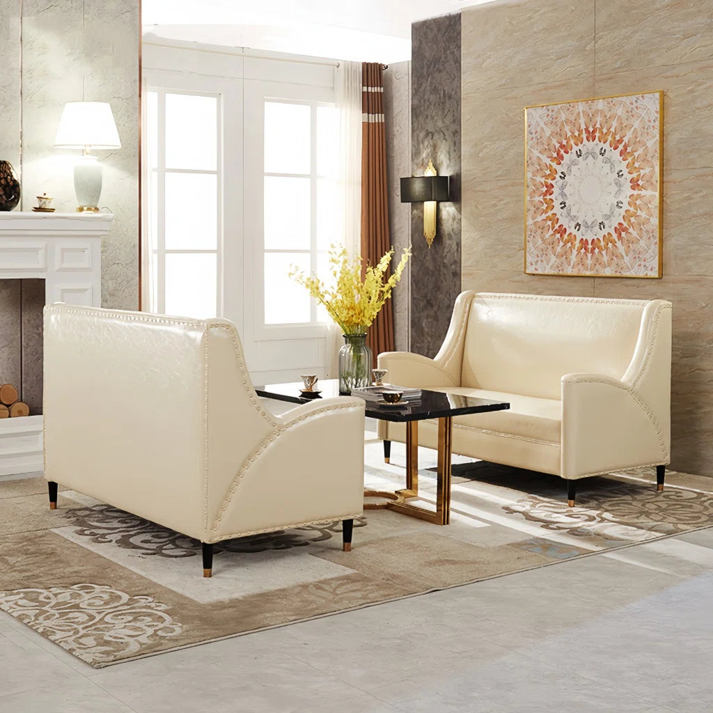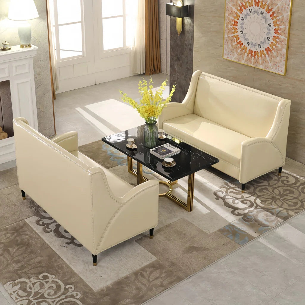 This seven-seater sofa set, offered in a stylish three-piece faux leather living room collection in an easy white color, will add stylish comfort and modern style to your house. This modern set offers the ideal mix of design and function for gatherings or living with a family. It appears with a matching coffee table, a cozy two-seater loveseat, and an open three-seater sofa. This seven-seater sofa set is made of costly copying leather, which makes it extremely soft to the touch, durable, and easy to clean. While the modern coffee table adds comfort and a polished finish to the setup, comfortable seating and soft cushions make it the perfect place to relax.