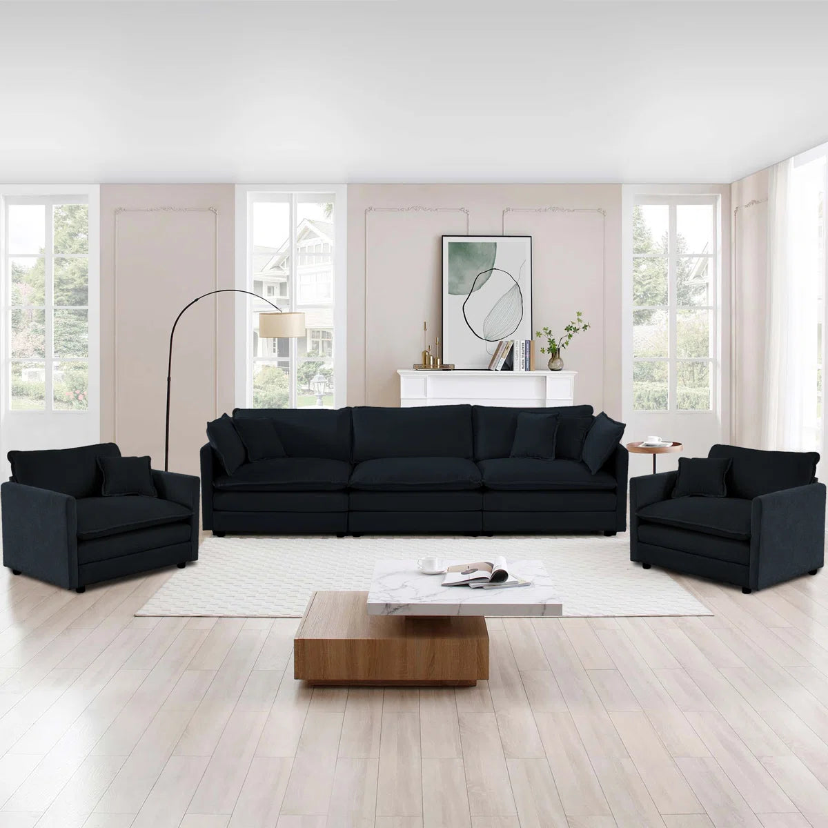 With this advanced three-piece seven-seater sofa set, that includes two cozy just one sofas and an open three-seater sofa, you can enhance your living area. With seven seating areas and a stylish, modern design, this set is suitable for hosting visitors or families. This 7-seater sofa set combines everyday cozy and long-lasting thanks to its durable wood structure and premium fabric seats. Everyone in the room can have a comfortable and peaceful standing confront thanks to the cozy pillows and strong arm rests. This small but useful seven-seater sofa set is perfect for formally sitting areas, areas, and medium-to-large living rooms. The flexible design is a capable and stylish addition to your house that combines in precisely with modern, minimalist, or a transition interiors.