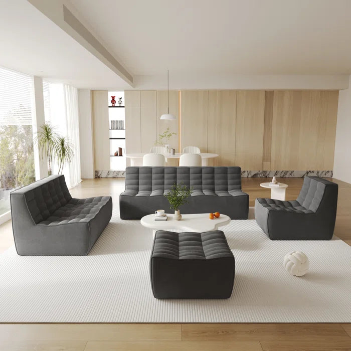 - The set includes a single sofa, a loveseat, a three-seater sofa and a ottoman, which can meet the needs of various scenarios such as living rooms and studies.