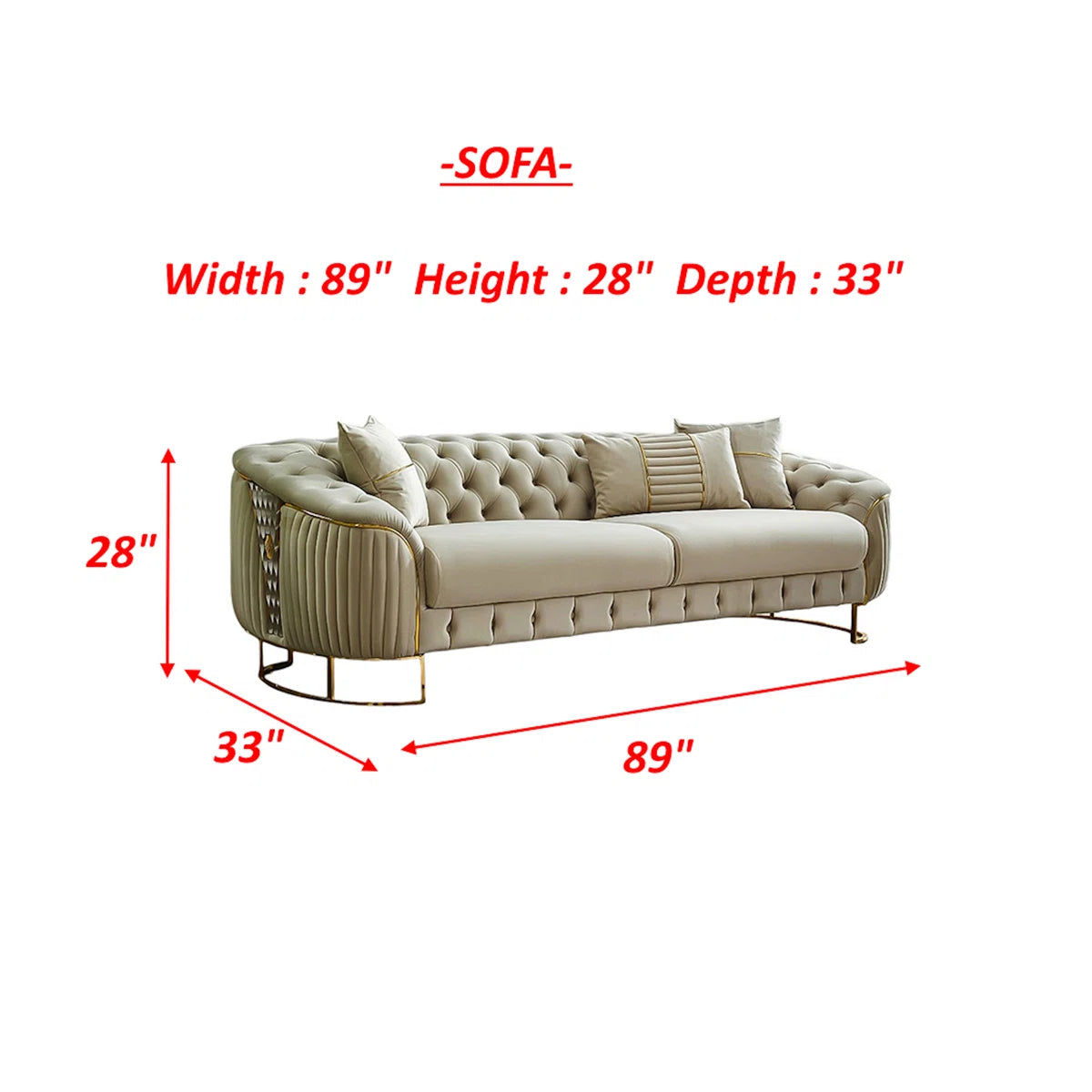 This complex seven-seater sofa set, provided with a four-piece velvet living room collection that is both stylish and comfortable will improve your living area. This velvet seven-seater sofa set, which is made with deep-tufted cushions, soft velvet fabric, and a solid wood frame, adds luxurious charm to any modern or standard space. The set offers lots of seating for people or family get-togethers with its roomy 3-seater, two single armchairs, and chic loveseat. With its high-density foam cushions and comfortable shape, this 4-piece 7-seater sofa set provides superior support and relaxation how much you're enjoyable or just relaxing.