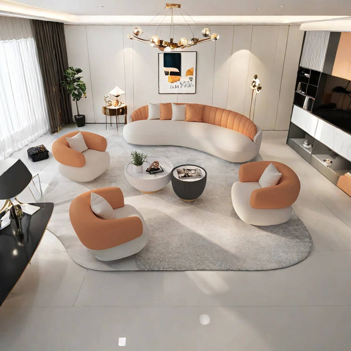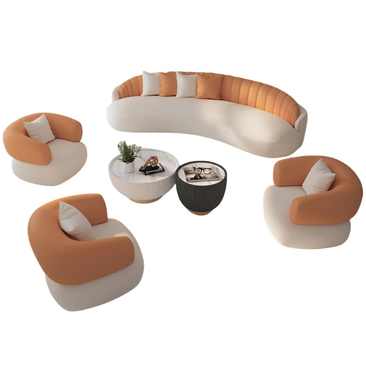 This six-piece faux leather living room set, which has been designed as a full seven-seater sofa set, will add ability and comfort to your home. This set features an open structure of sofas, loveseats, and armchairs that provide plenty of space for up to seven people, so it's ideal for big groups of people who take enjoyable. This seven-seater sofa set, fully fabric in quality the manner leather, has a rich, luxurious style and an extra benefit being simple to clean and control. A modern and comfortable area for lying or relaxing is created by the supportive backrests, fashionable designs, and modified cushions.