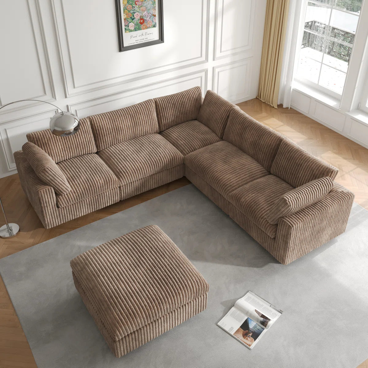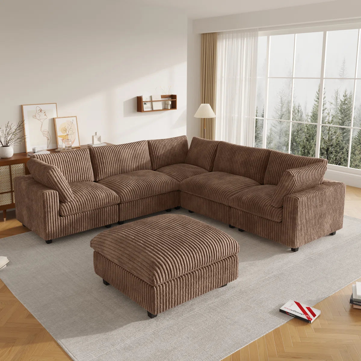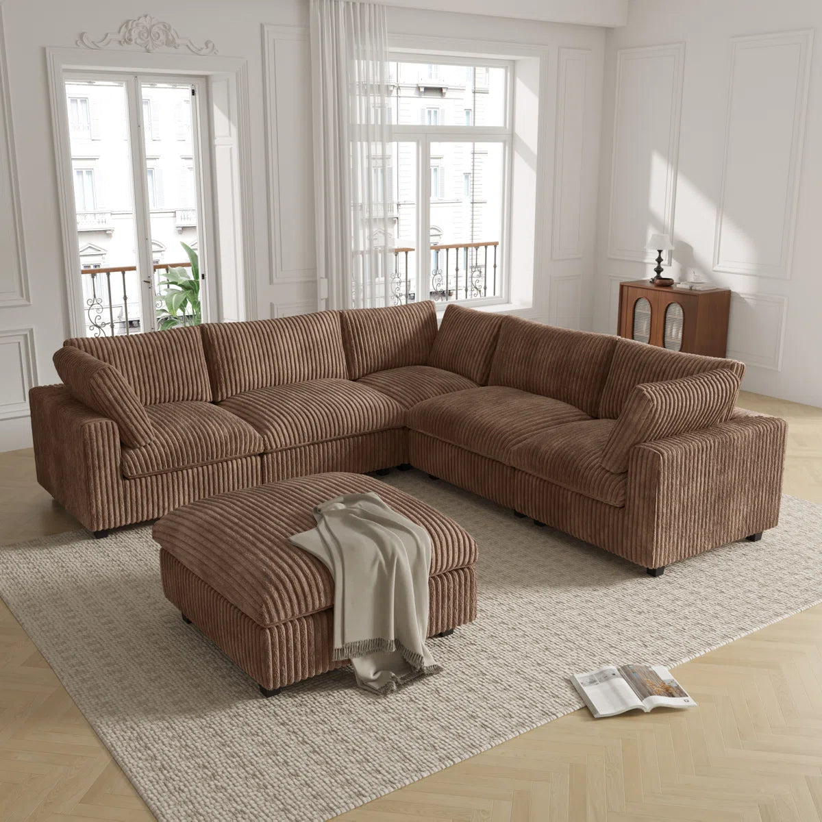 7 Seater Sofa Set: 6-Piece Upholstered Sectional with Ottoman