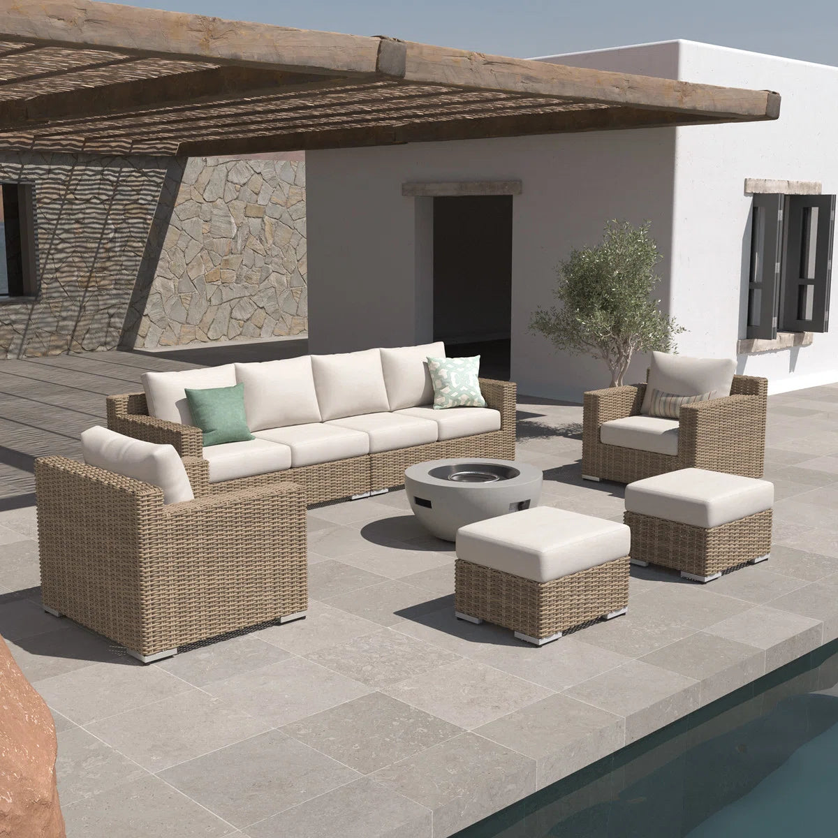 7 Seater Sofa Set: 7-Piece Fire Pit Seating Set for Patio or Garden