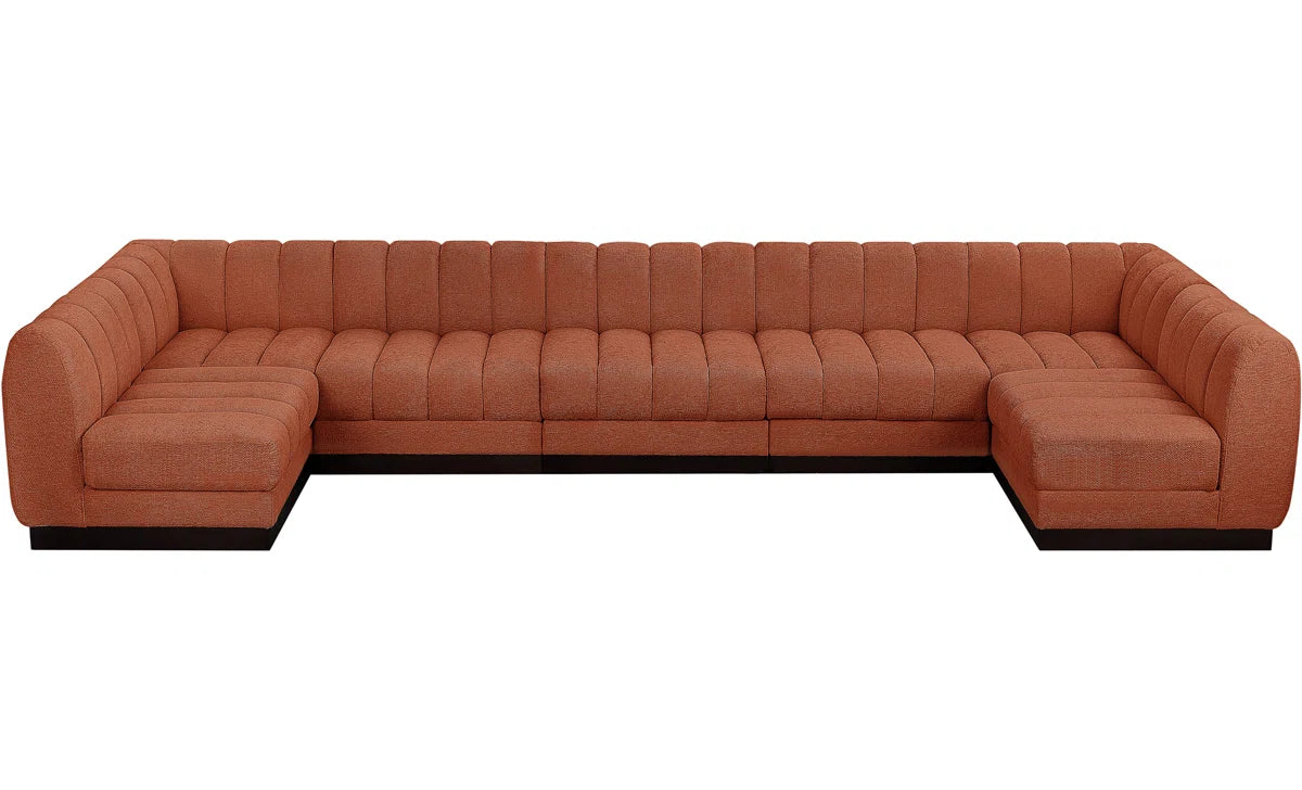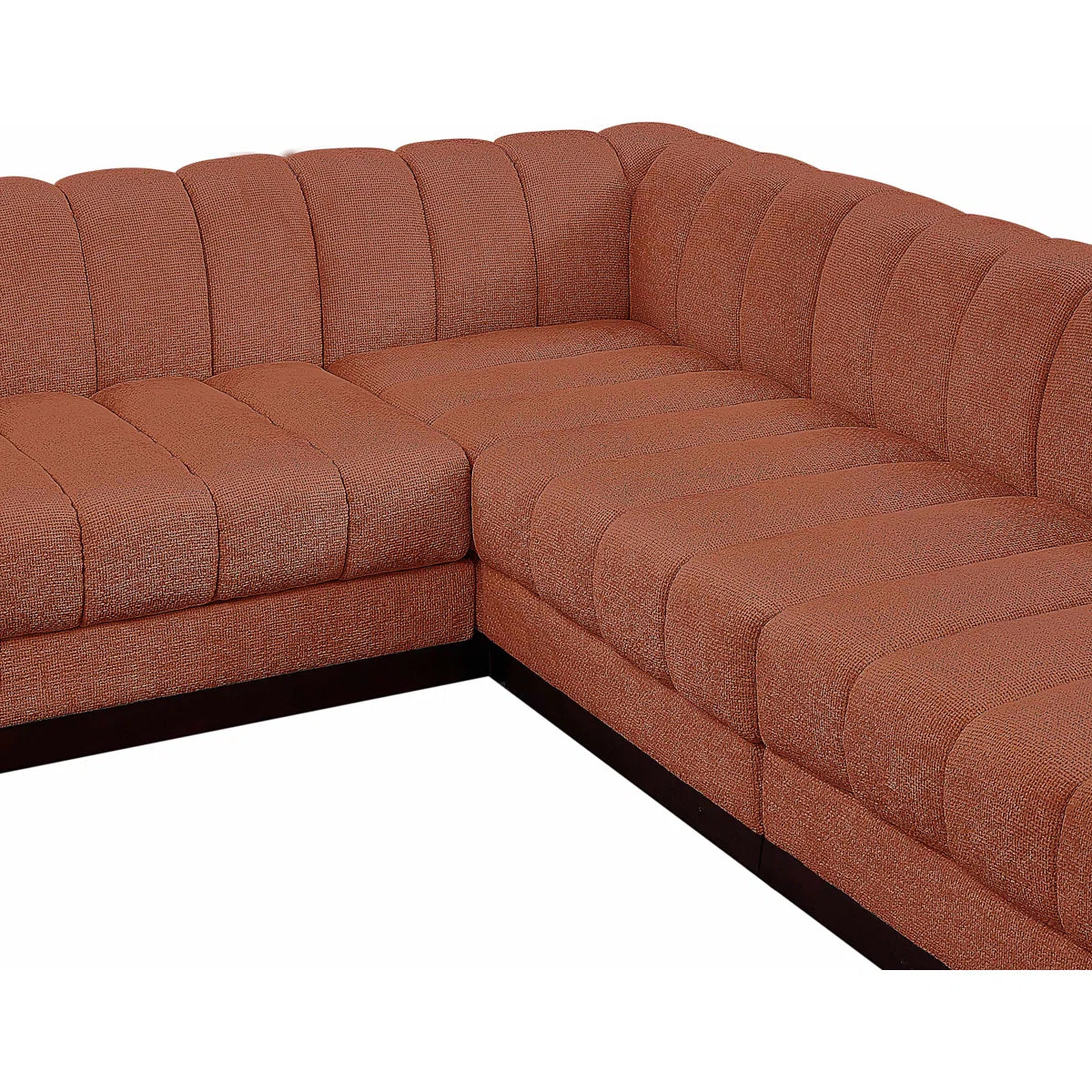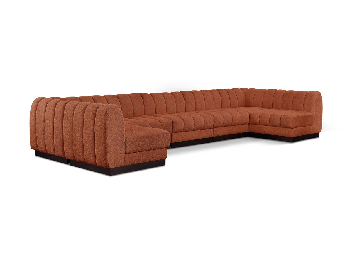 This gorgeous Modular Sectional is made from a sumptuous chenille fabric. Its outstanding craftsmanship and breathtaking design make it the ideal addition to any home, be it an office, bedroom, or living room. The sectional will be a favorite for many years to come thanks to its comfortable and long-lasting plush padding and strong frame. The sectional is a great option whether you're searching for a statement piece or just a cozy place to sit.