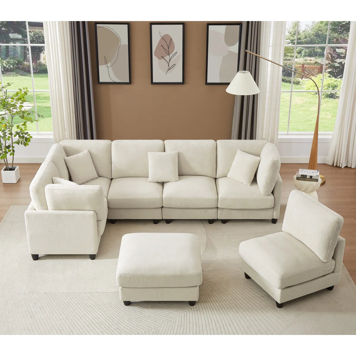 7 Seater Sofa Set: 7-Piece Upholstered Sectional for Living Room