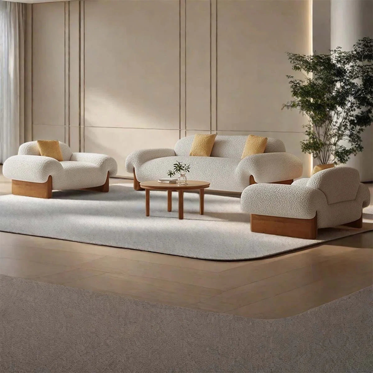 This modern seven-seater sofa set, that features an 89.76-inch beige lamb velvet sofa designed in rich cherry wood, will improve your home's décor. This lovely sofa set is an ideal blend of classical style and modern appeals, and it is made for those that value both luxury and durability. This seven-seater sofa set, which has well cushions and supportive armrests, is covered in extremely cozy beef velvet. Any formal living room, lounge, or office landing can benefit from the a strike piece's traditional appeal and reliability, which is enhanced by the durable hardwood frame.