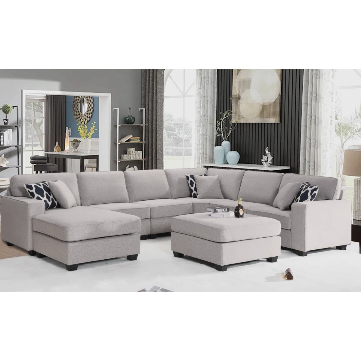 This feature 9-piece fabric sectional will turn your living room into a luxurious place to relax. whether you're a party or doing an enjoyable night at home, each flexible piece can be modified to fit your space just due to its comfortable and adaptable design. This sectional gives a modern touch to any décor with its cozy cushions, soft, long-lasting upholstery, and fashionable form. With its corner units, armless chairs, and ottomans for its greatest seat ability, it's excellent for large functions or enjoyment areas.