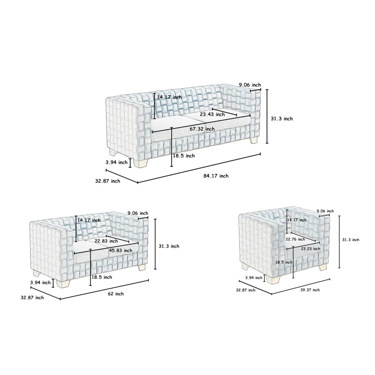 Loveseat 31.3'' H X 62'' W X 32.67'' D