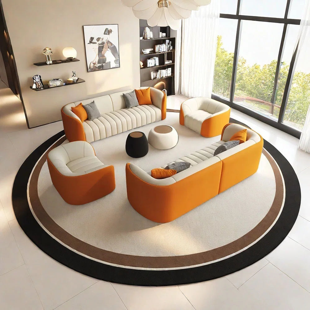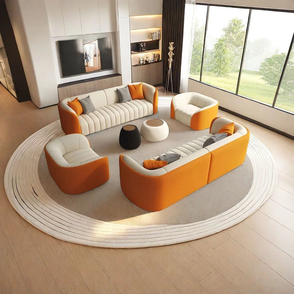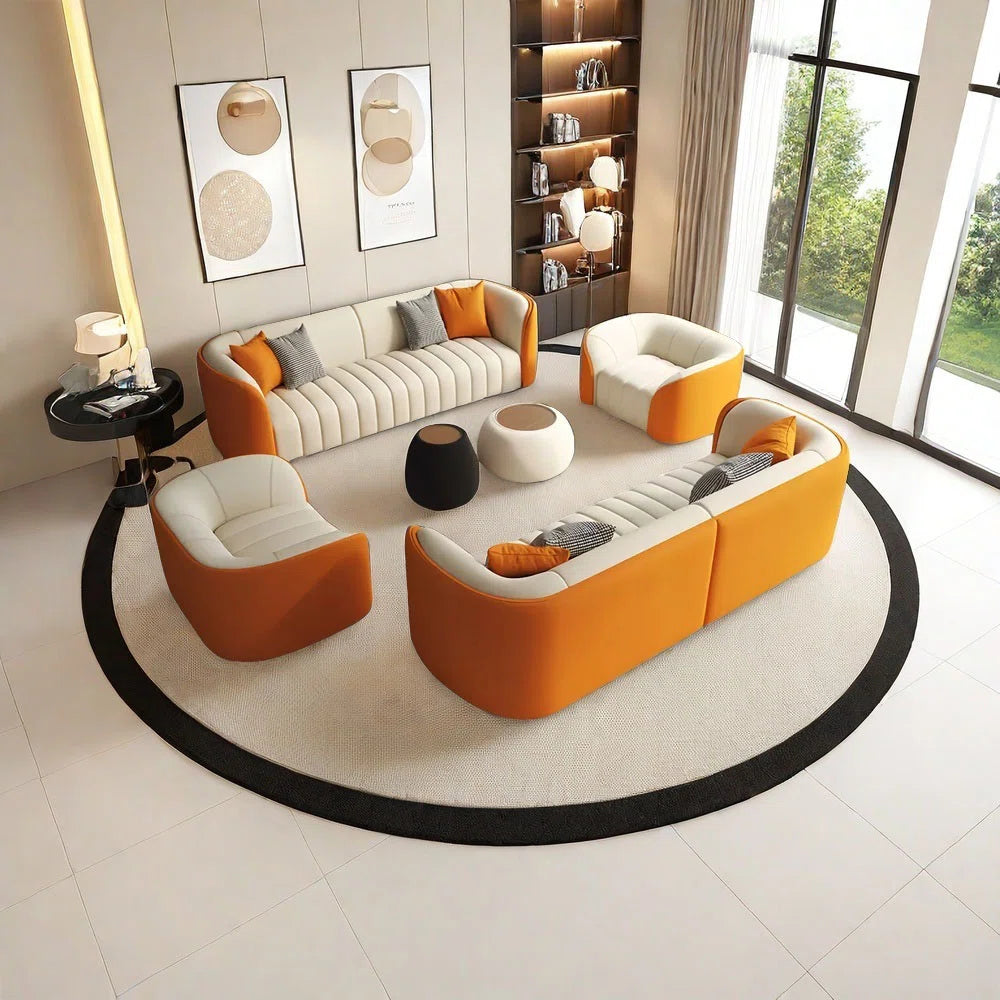 This business light luxury seven-seater sofa set is ideal for executive areas, meeting spaces, and luxurious getting areas. It will leave a lasting mark. This elegant settlement sofa set combines reliability, comfort, and trendy design. Its roomy 3+2+1+1 setup easily seats up to seven people. This seven-seater sofa set, which is fabric in high-end materials and has amazing stitches, exudes expertise and conveys the quality and concern on detail of your brand. It's perfect for hard talks, talks, or client meetings for its supportive design and warm cushions. It combines in perfectly with trendy office decor due to its clean design and soft colors.