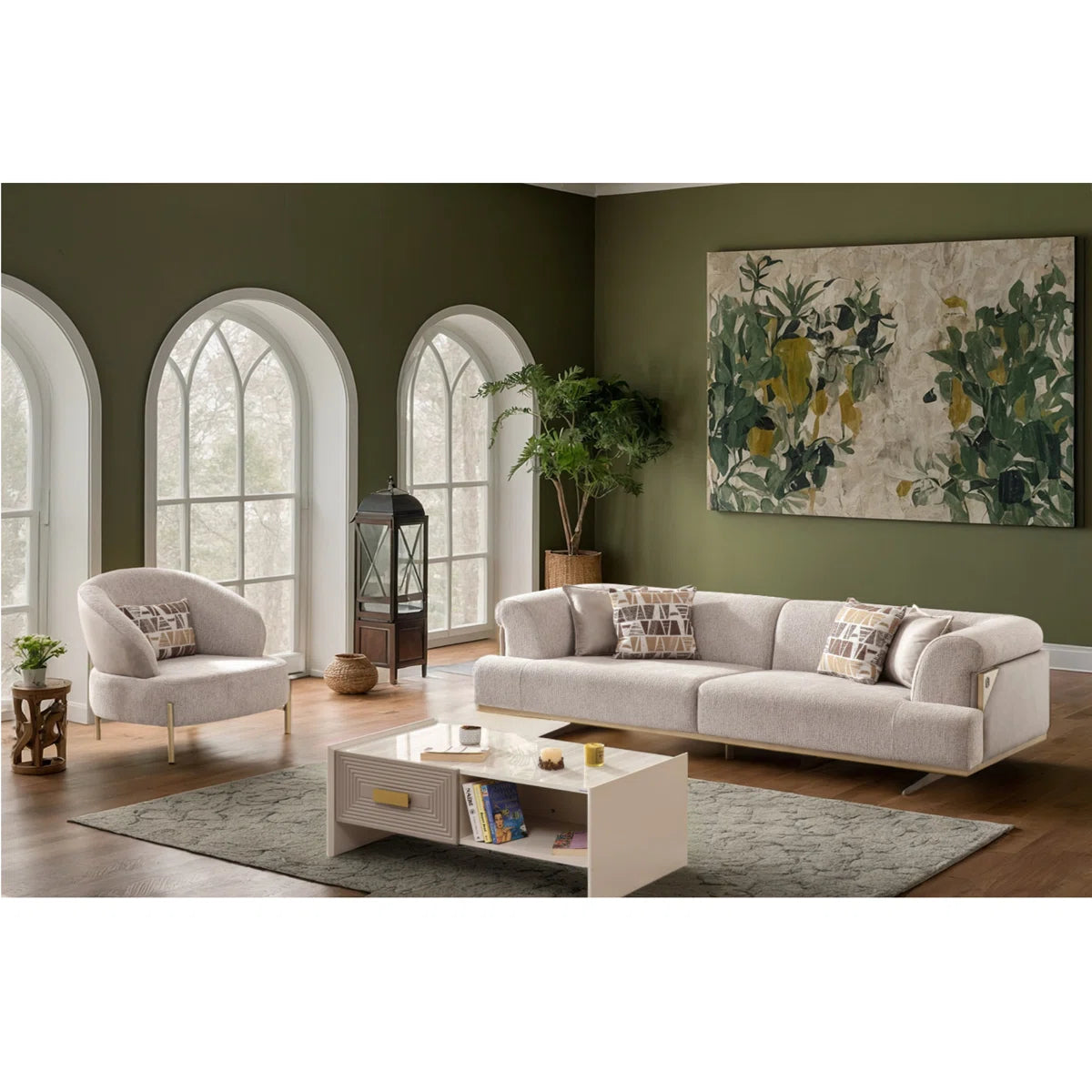 - This stylish three-piece living room set, which combines extraordinary comfort and capturing grace, will enhance your house. Your guests will be displayed by the warm and rich decor created by its unique style.