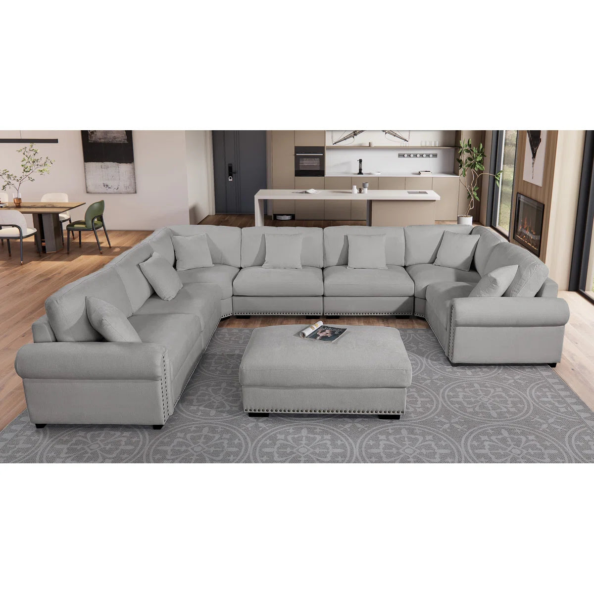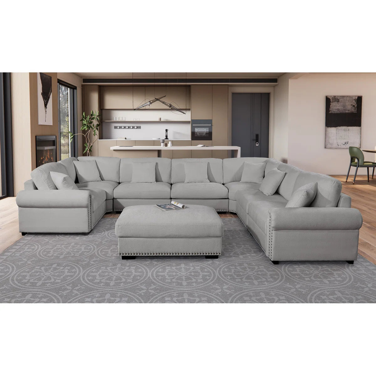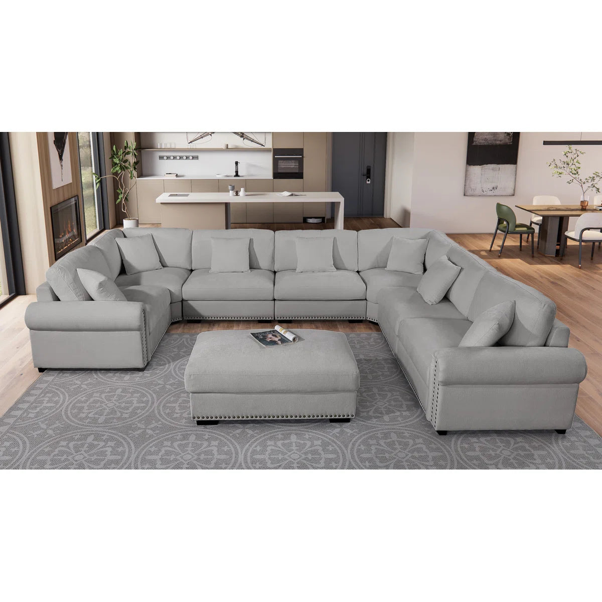 This modern seven-seater sofa set will add style to your living area. It is constructed as a roomy eight-seater corner sectional with a reusable, movable the ottoman. The removable design, which is covered in high-quality fabric, provides several of layout options to fit any room size or style. This sectional combines comfort, performance and modern style, making it perfect for functions with family or hosting company. This modular setup provides luxury and space in an elegant package, perfect for enjoyable or relaxing on your own.