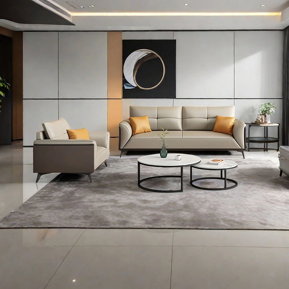 This modern and stylish seven-seater sofa set, which is made of high-quality leather for a smooth, current looks, will enhance your office space. This easy business sofa set offers comfort and style for executive areas, waiting areas, or the business meetings. To facilitate team meetings or client talks, the seven-seater sofa set comes with a mix of single, two, and three seats. The sofas' ergonomic design, positive a cushion, and easily cleaned leather covers provide long-lasting comfort even after hours of use. Clean lines and a simple organize produce an elegant look that moves well with any company's setting.