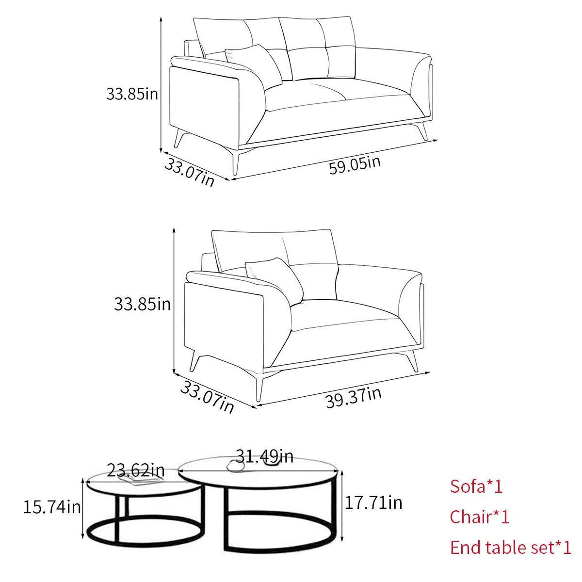 Sofa 33.85'' H X 59.05'' W X 33.07'' D