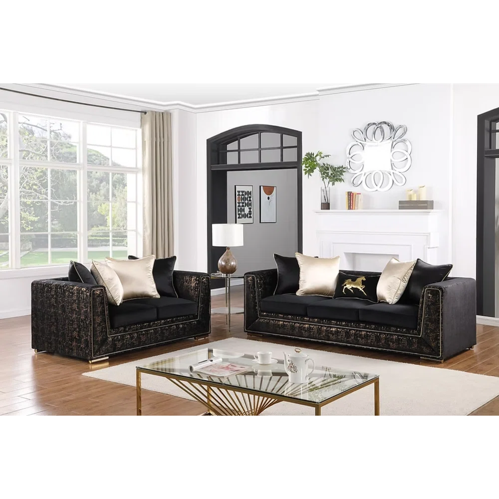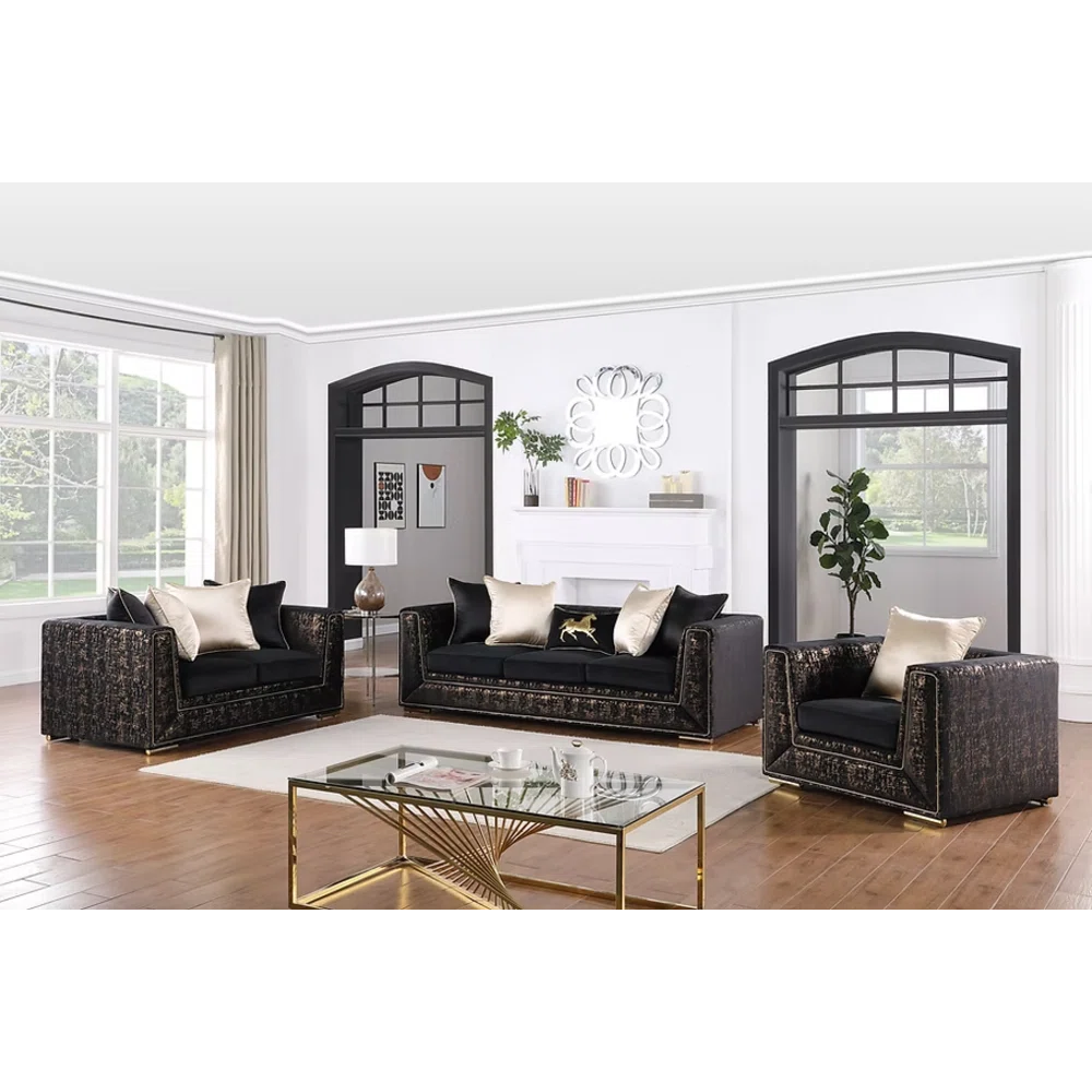 The Konya Black 7-seater sofa set is an advanced 3-piece living room collecting that combines luxury with comfort to create a bold and fashionable statement in your living area. With room for up to seven people, this luxurious set features a roomy three-seater sofa, a cozy two-seater loveseat, and an elegant armchair. It's the perfect seven-seater sofa set for social events or families. The Konya set, which has deep, favorable cushions and a durable frame, is coated in rich black fabric and offers a modern looks This seven-seater sofa set provides the ideal balance of design and comfort, when you're relaxing with your families or inviting over guests.