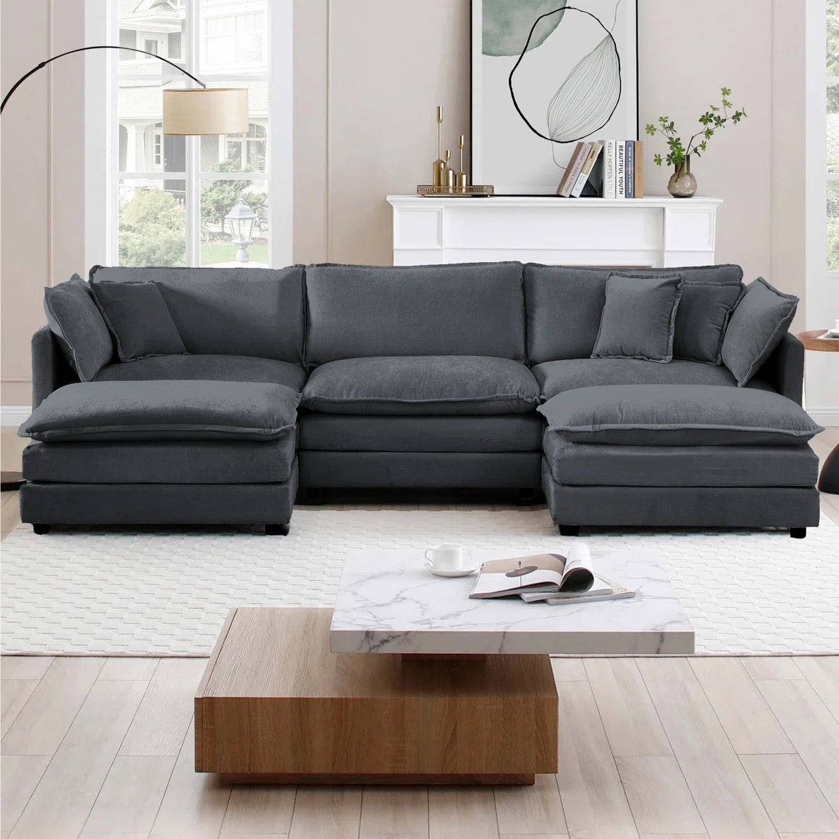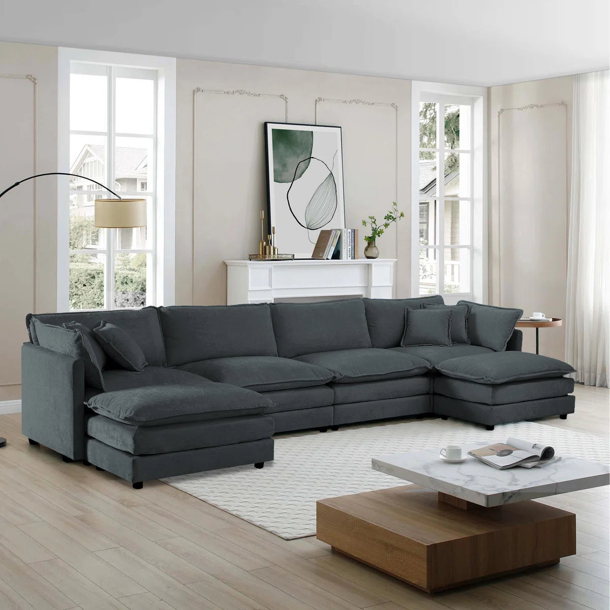 7 Seater Sofa Set: U-Shaped Chenille Modular Sofa Set