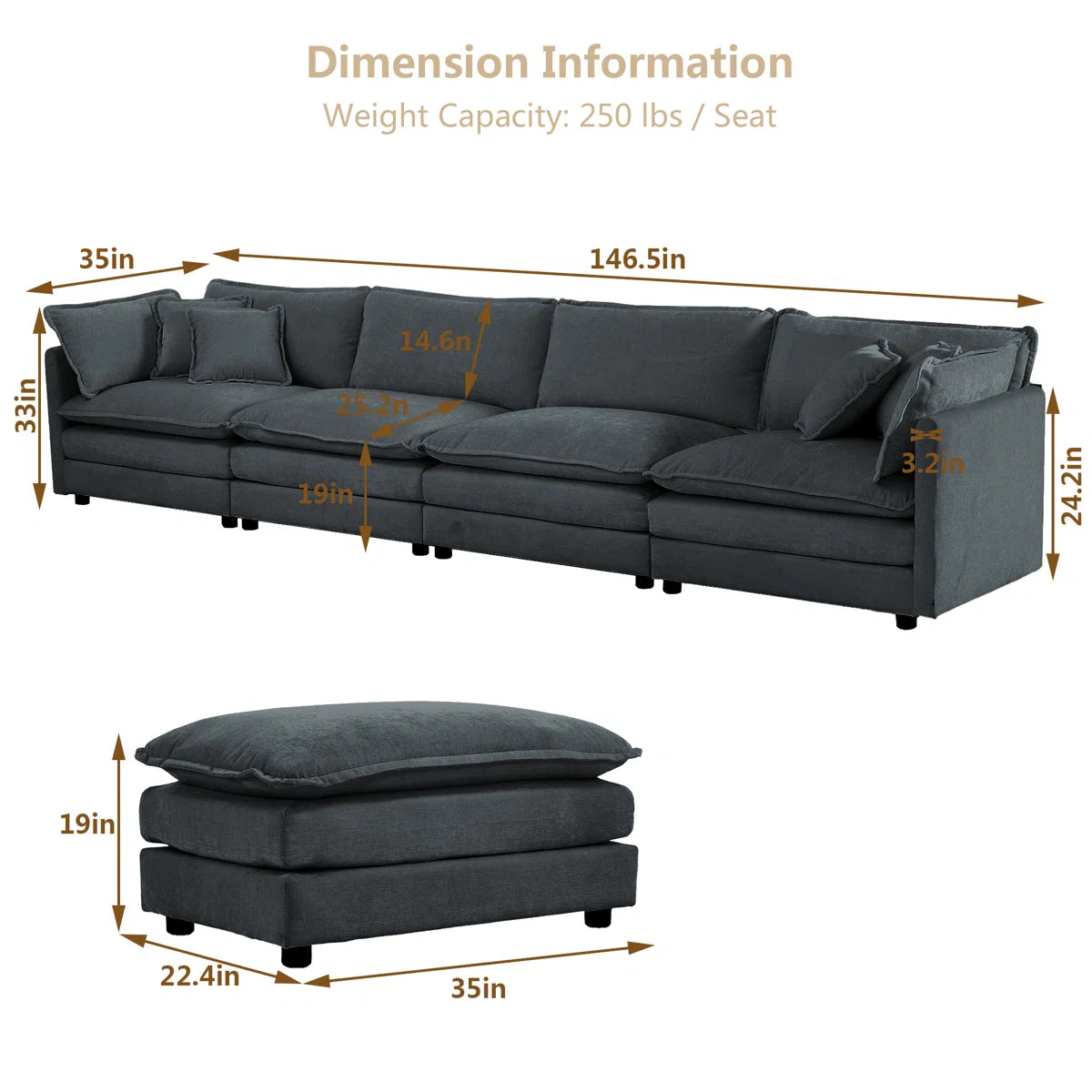 Overall 33'' H X 111.5'' W X 35'' D