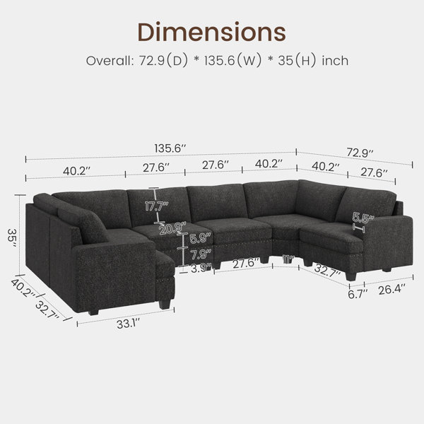 Sofa 35'' H X 135.6'' W X 72.9'' D
