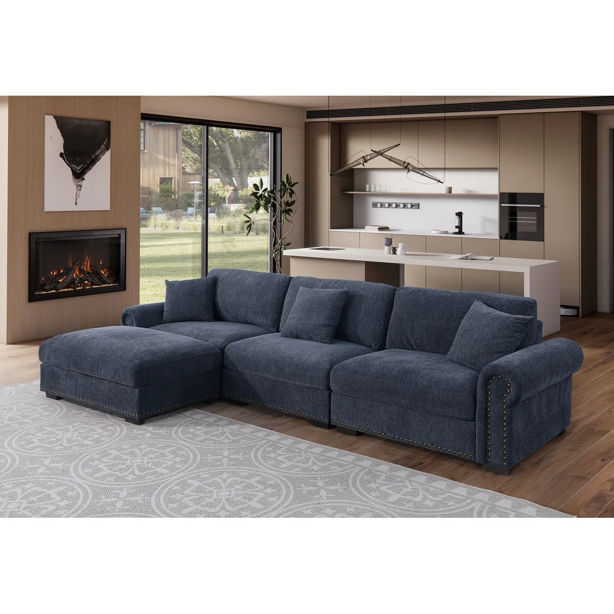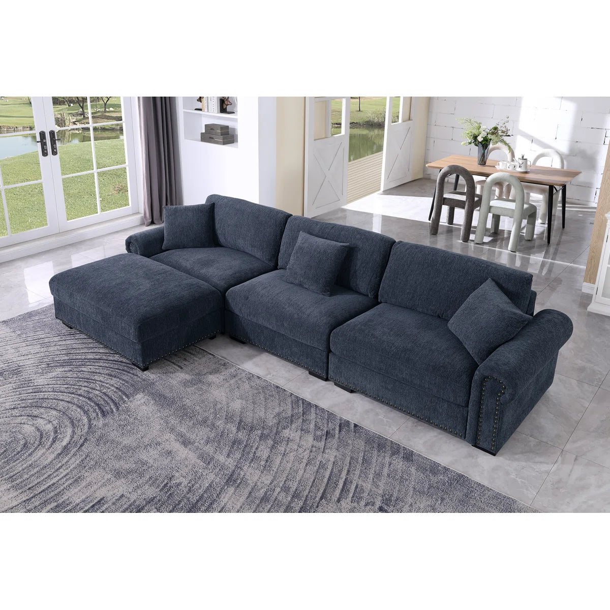 7 Seater Sofa Set: Upholstered Seville Couch with Ottoman for Spacious Living Rooms