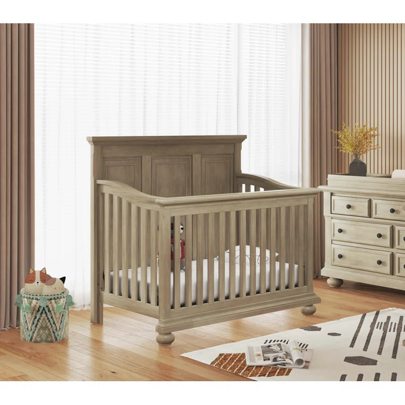 With its modern gray finish, this 4-in-1 convertible crib brings a sleek, stylish touch to any nursery. The crib converts to a toddler bed, daybed, and full-size bed, ensuring long-term adaptability. Its sturdy construction and timeless design make it a durable and attractive investment.