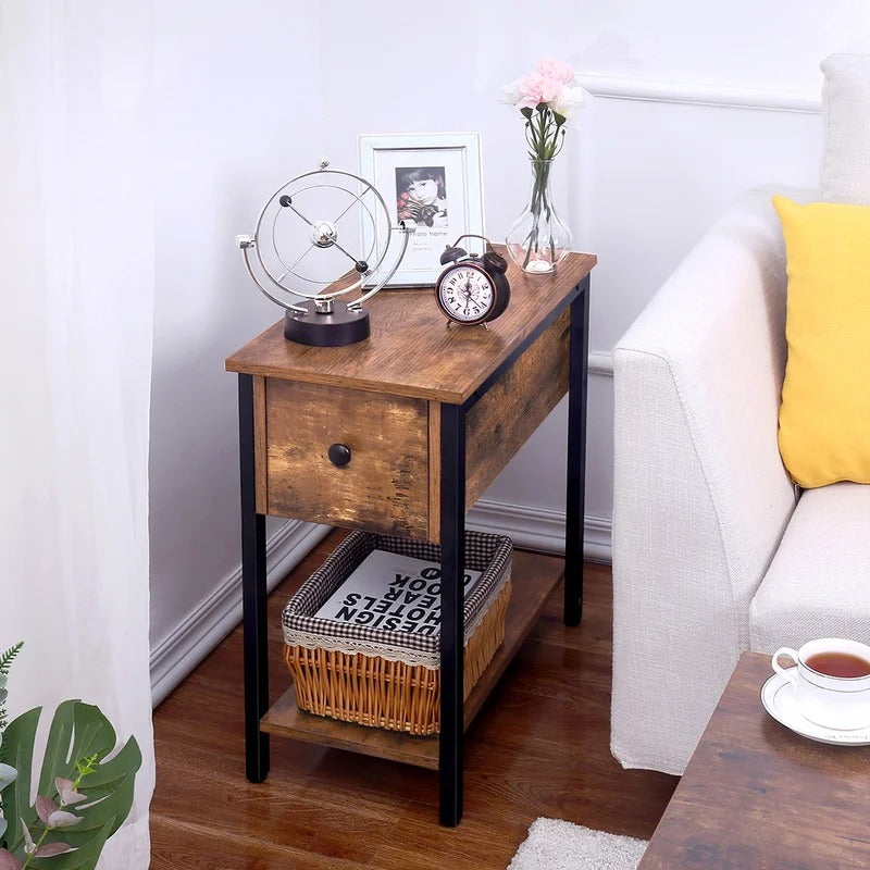 This tall end table with storage is incredibly practical! It provides extra space for keeping magazines or remote controls tucked away. The design is modern, and it fits perfectly beside my sofa.