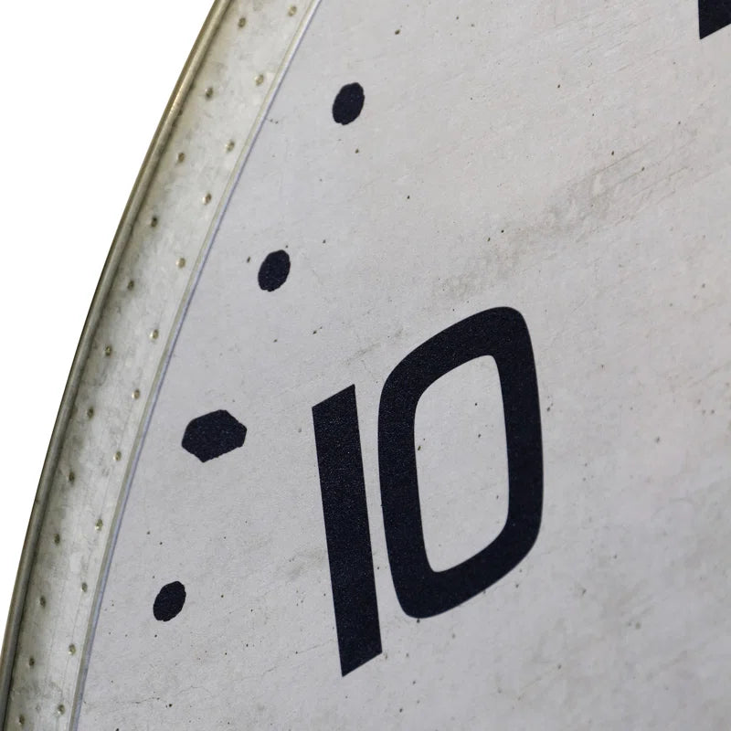 This oversized wall clock is an easy way to transform a plain wall into a focal point. It's made from engineered wood with a metal rim, and it has a vintage-inspired finish with purposeful fading and distressing.