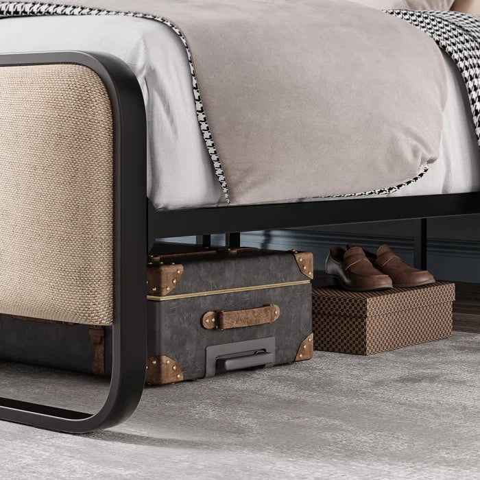 - Luxurious Headboard & Footboard: Made of high-quality fabric and a highly resilient sponge, the upholstered woven headboard and footboard are soft and skin-friendly, cozy to lean on. The color of beige looks warm and gentle, and the curved design of the metal bed is classic, making it fit well in any style of the room and accent your cozy room.