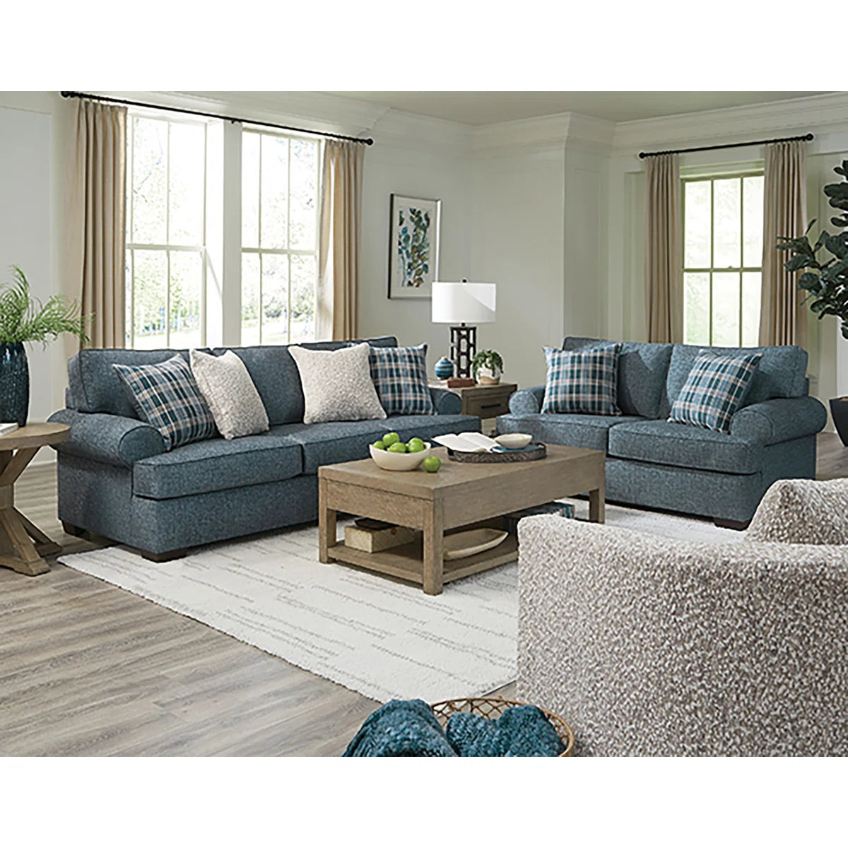 - Includes a sofa, a loveseat, and six stylish pillows for cozy comfort.