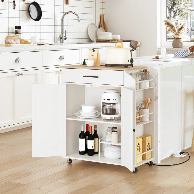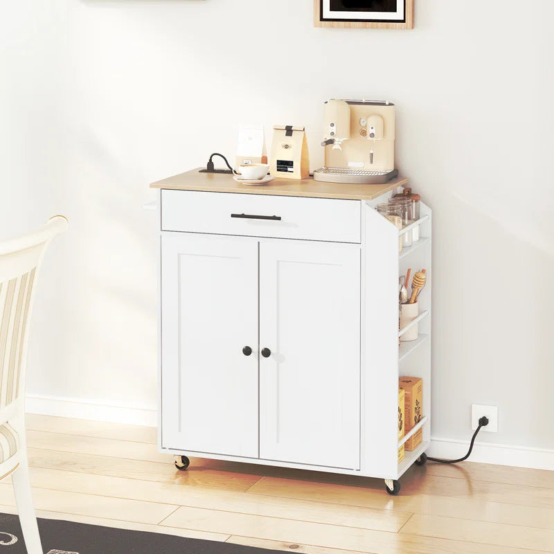 Kitchen Island Table: 26'' Wide Classic Multi-Storage Cart with Charging Station