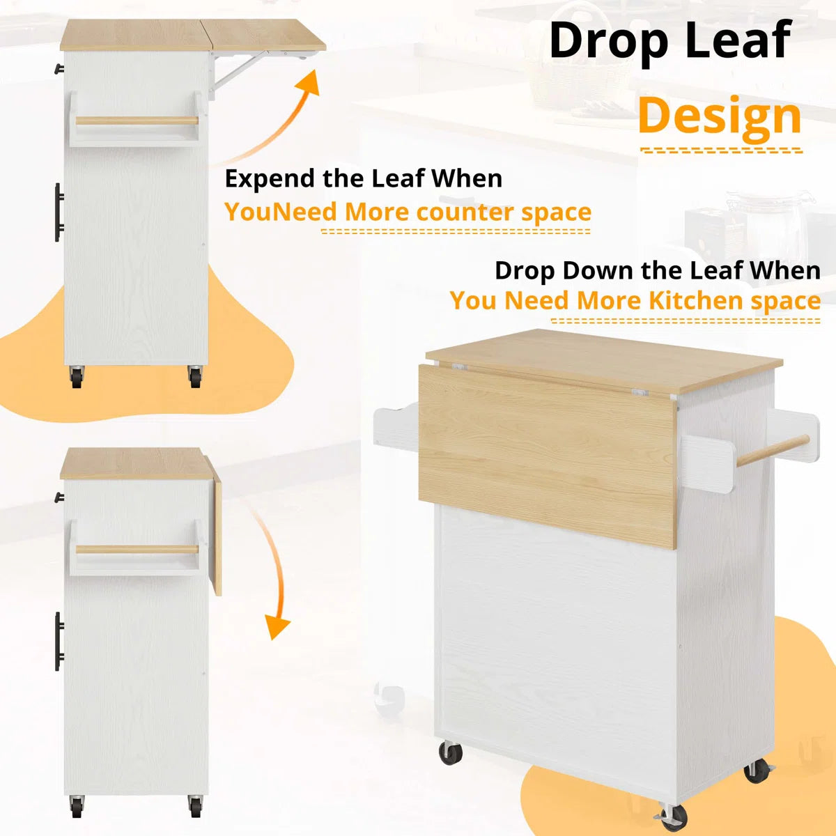 - Foldable Countertop: Drop-leaf design provides extra prep space when needed and folds down to save room.