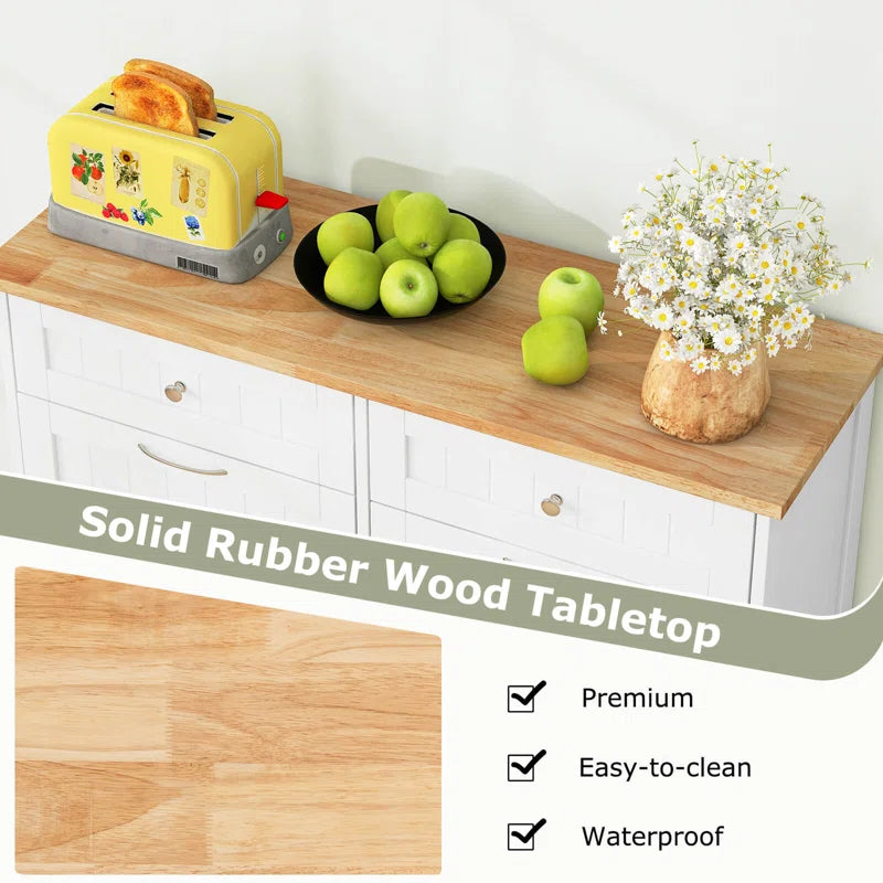• Rubber wood countertop holds up to 90 kg, ideal for prep or storage.