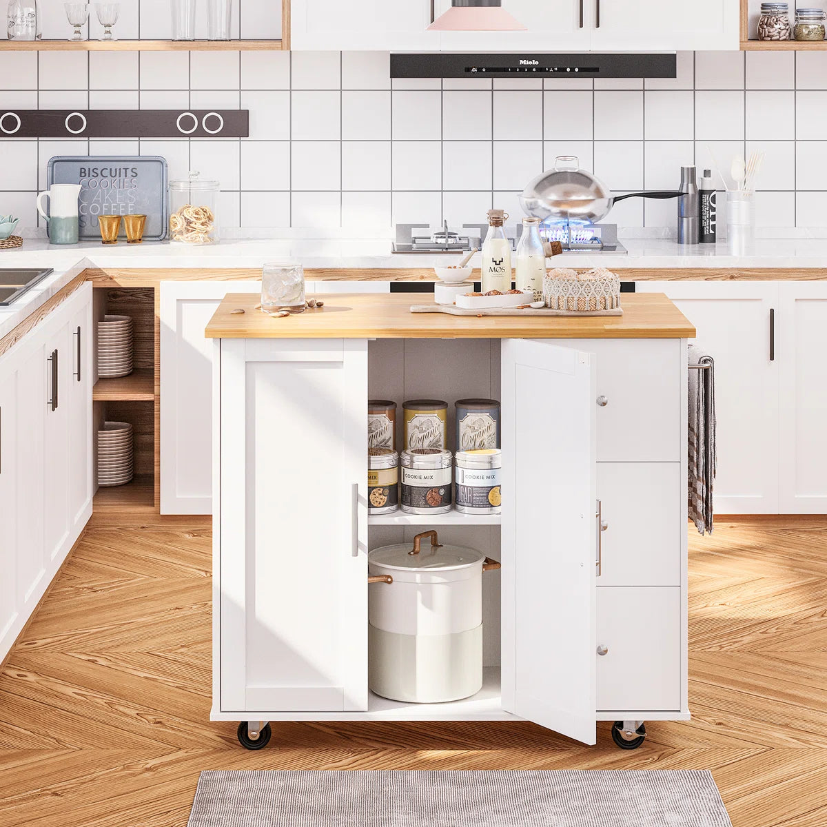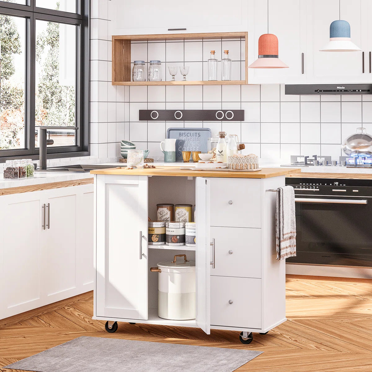 Kitchen Island Table: 39.7” Rolling Cart with Drop Leaf, Cabinet, Drawers & Towel Rack,