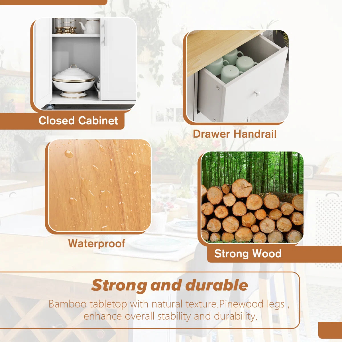 Upgrade your kitchen with this stylish and functional Kitchen Island Table, designed to meet all your storage and prep needs. Made from solid and engineered wood, it features a wide countertop that’s waterproof and easy to clean. The drop-leaf design adds extra workspace or can act as a dining bar. With 3 spacious drawers and a large 2-door cabinet with adjustable shelves, you get ample storage. It also includes 5 wheels (2 lockable) and a towel rack handle for effortless mobility and organisation.