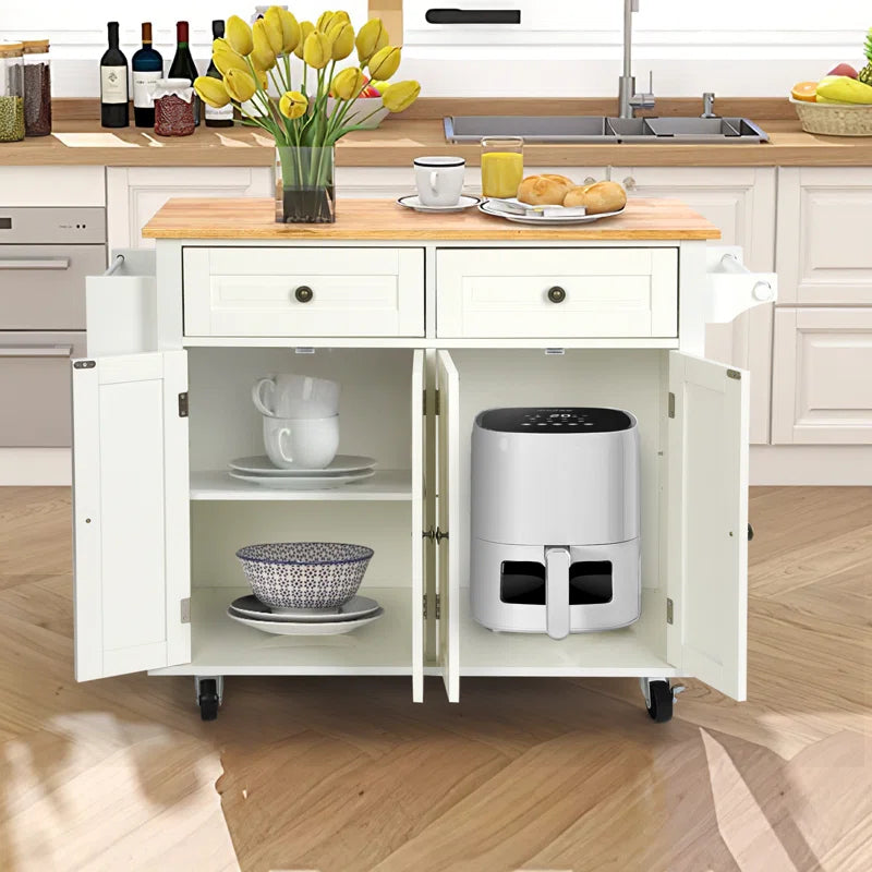 Kitchen Island Table: 43.3'' Wide Rolling Cart with Storage & Solid Wood Top