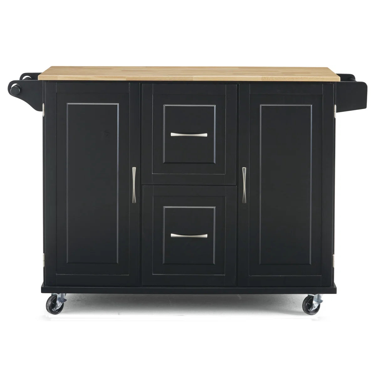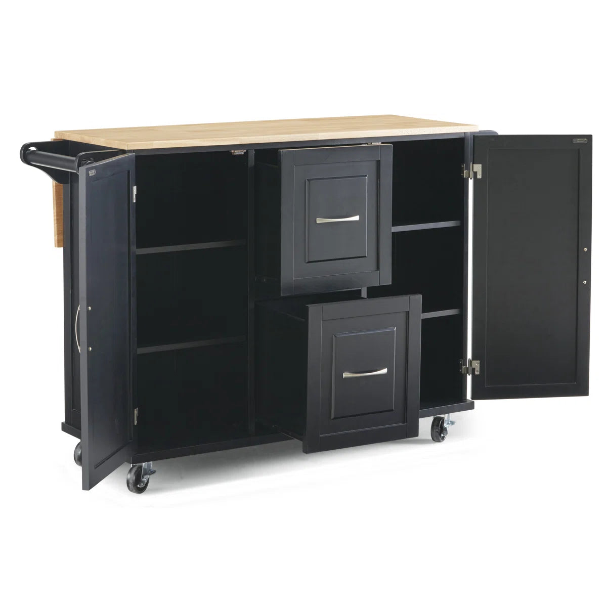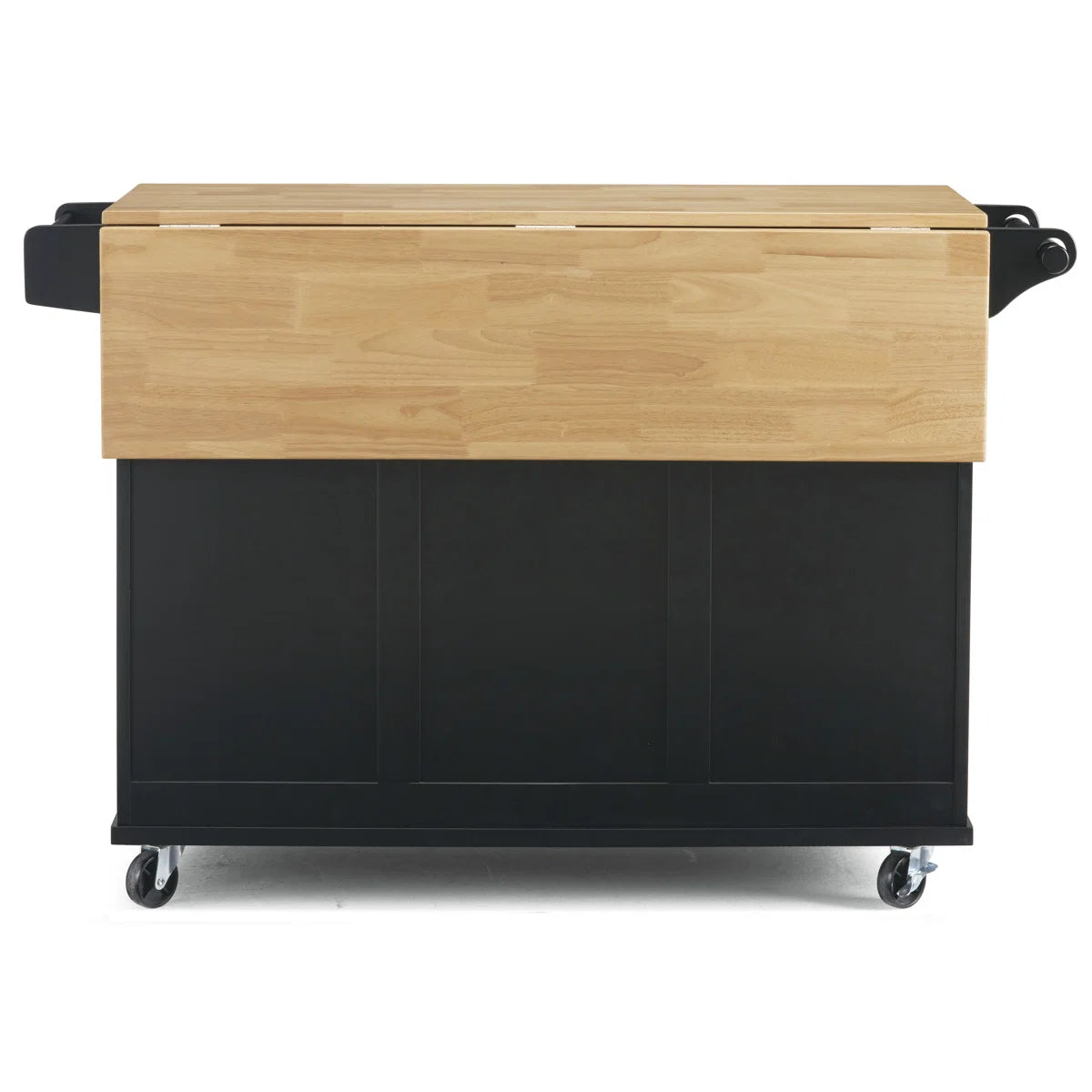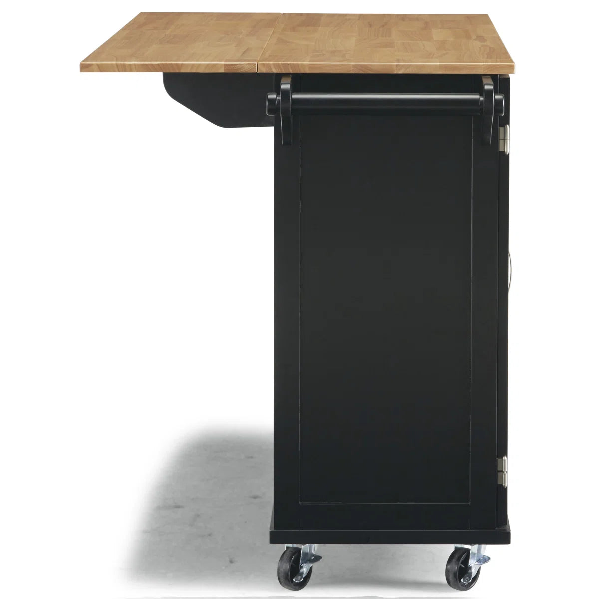 This Kitchen Island Table combines classic charm with modern utility, making it a perfect addition to your modular kitchen. Crafted entirely from solid wood with a natural maple finish top and black base, it offers a wide counter that extends from 17.25" to 29" with a drop leaf—ideal for prepping or casual dining. It comes with 2 spacious cabinets, 2 drawers, dual towel racks, and smooth-lock caster wheels for easy mobility and storage. A stylish and sturdy solution for busy kitchens!