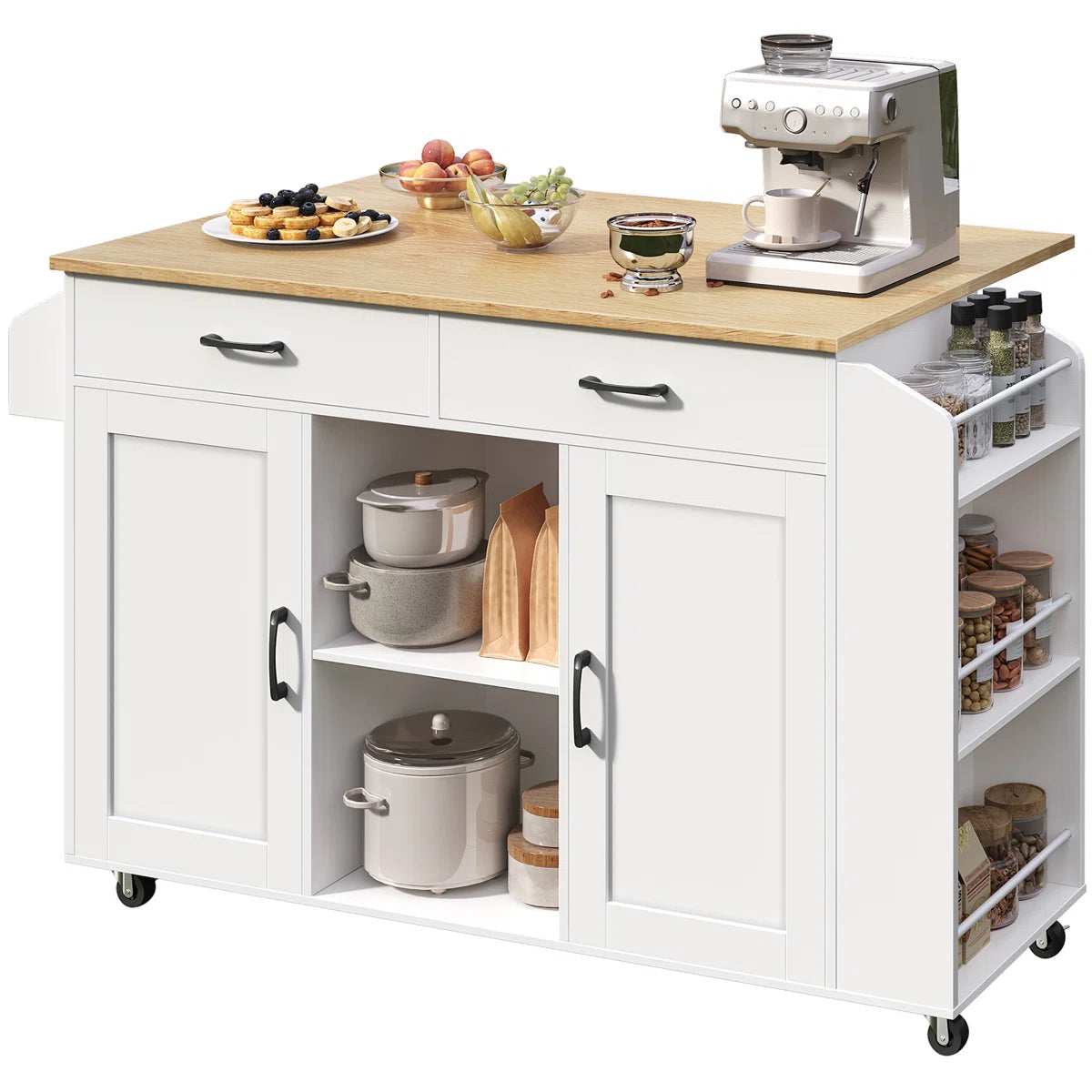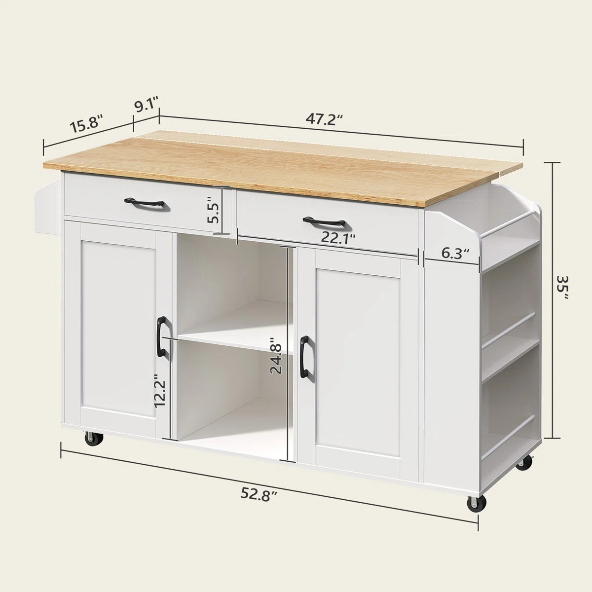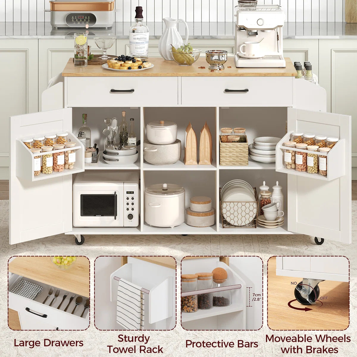 Kitchen Island Table: 52.8'' Foldable Kitchen Cart with Storage, Drawers, and Casters,