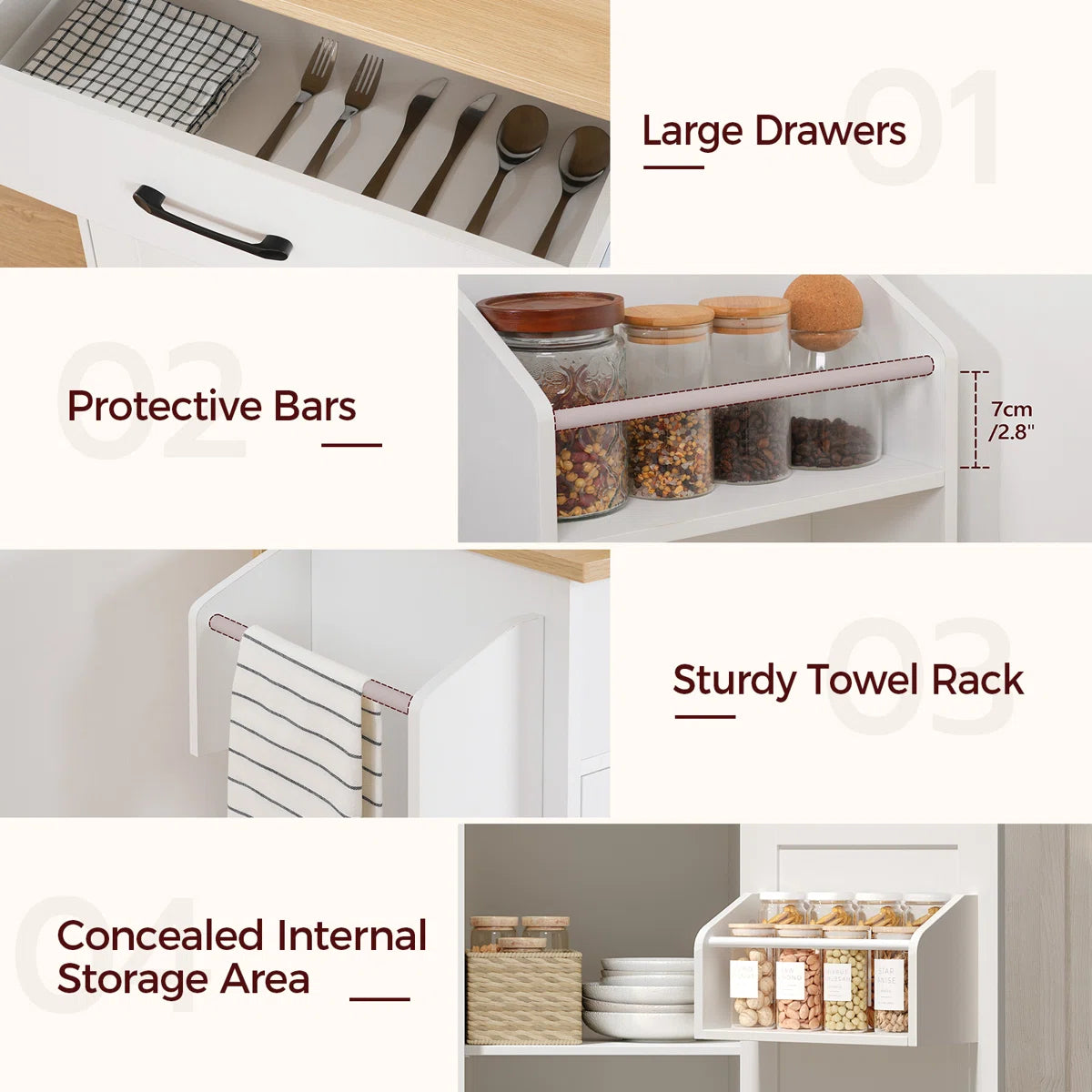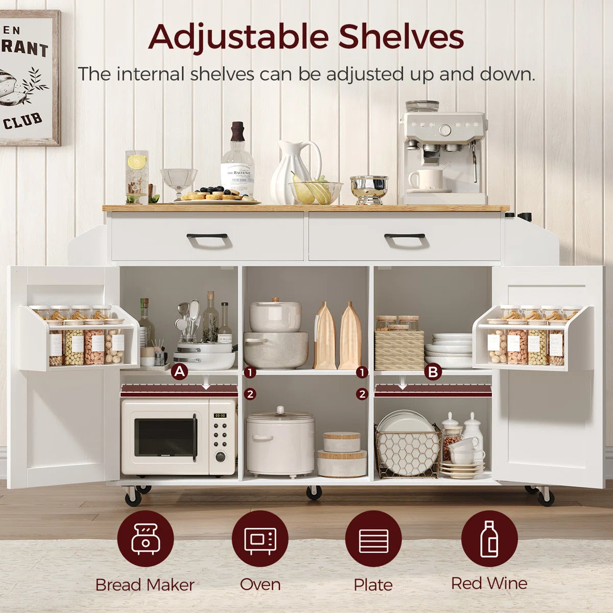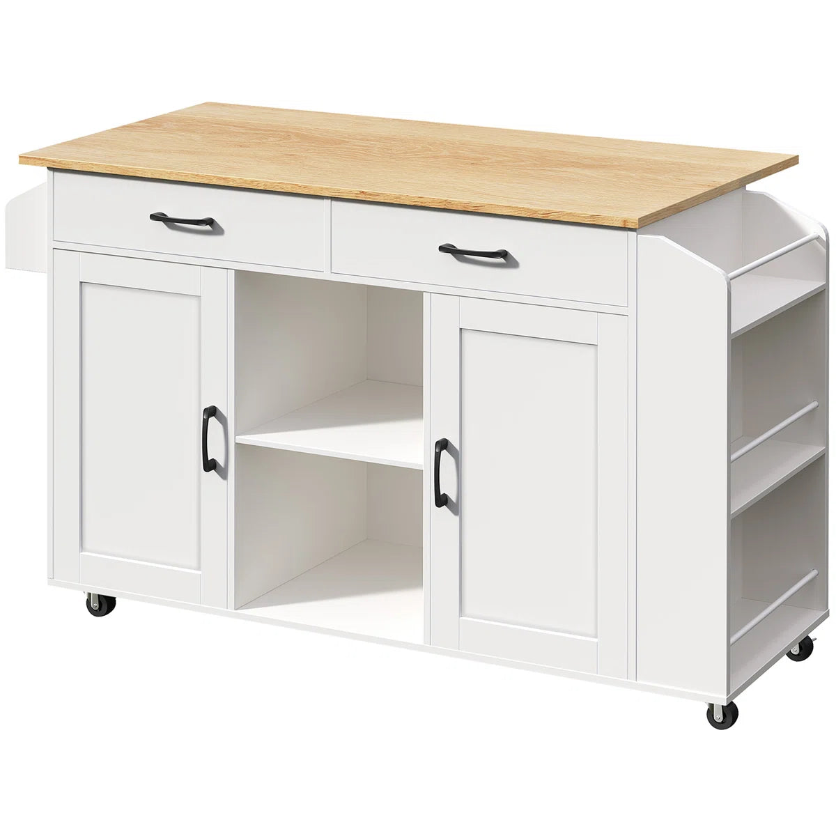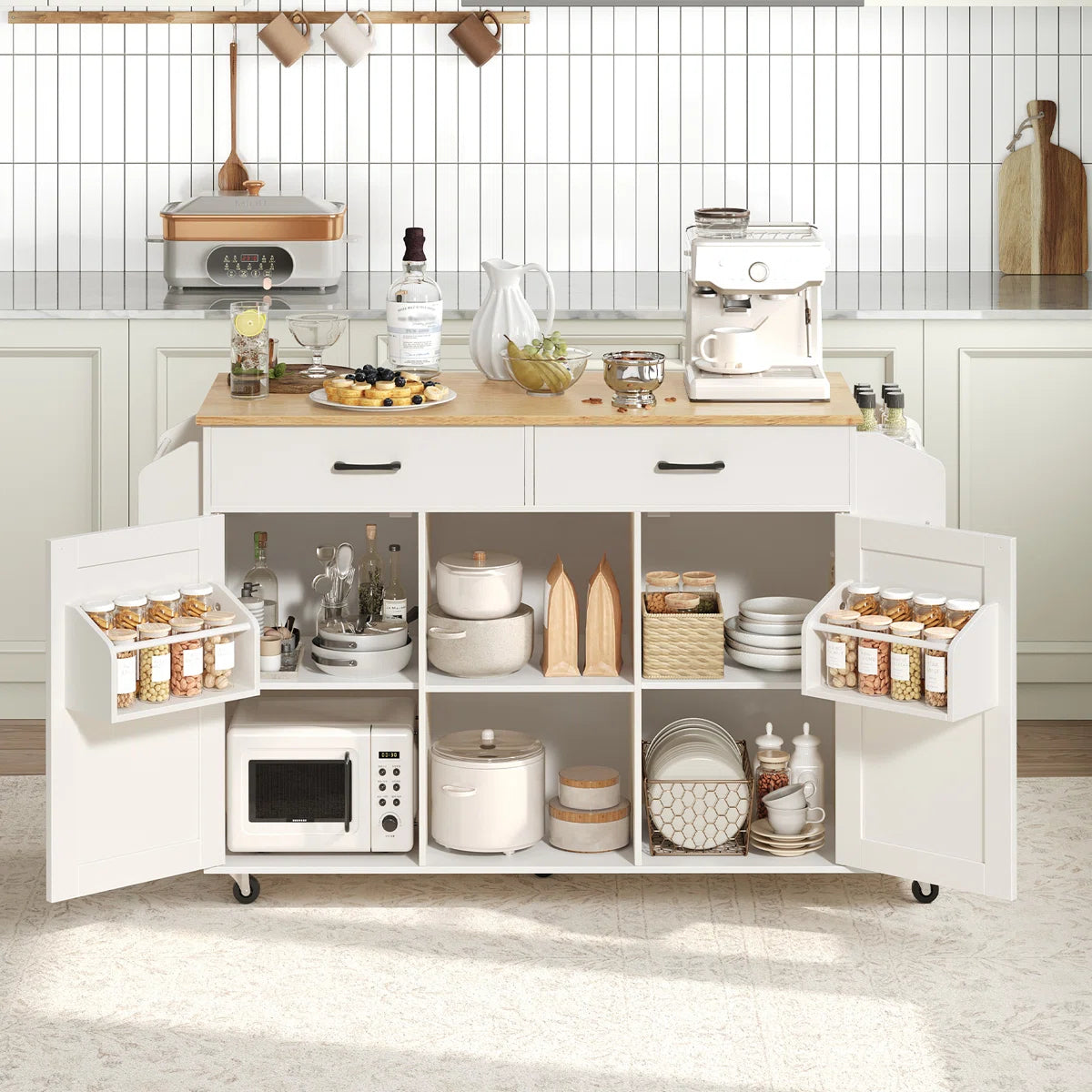 Kitchen Island Table: 52.8'' Foldable Kitchen Cart with Storage, Drawers, and Casters,