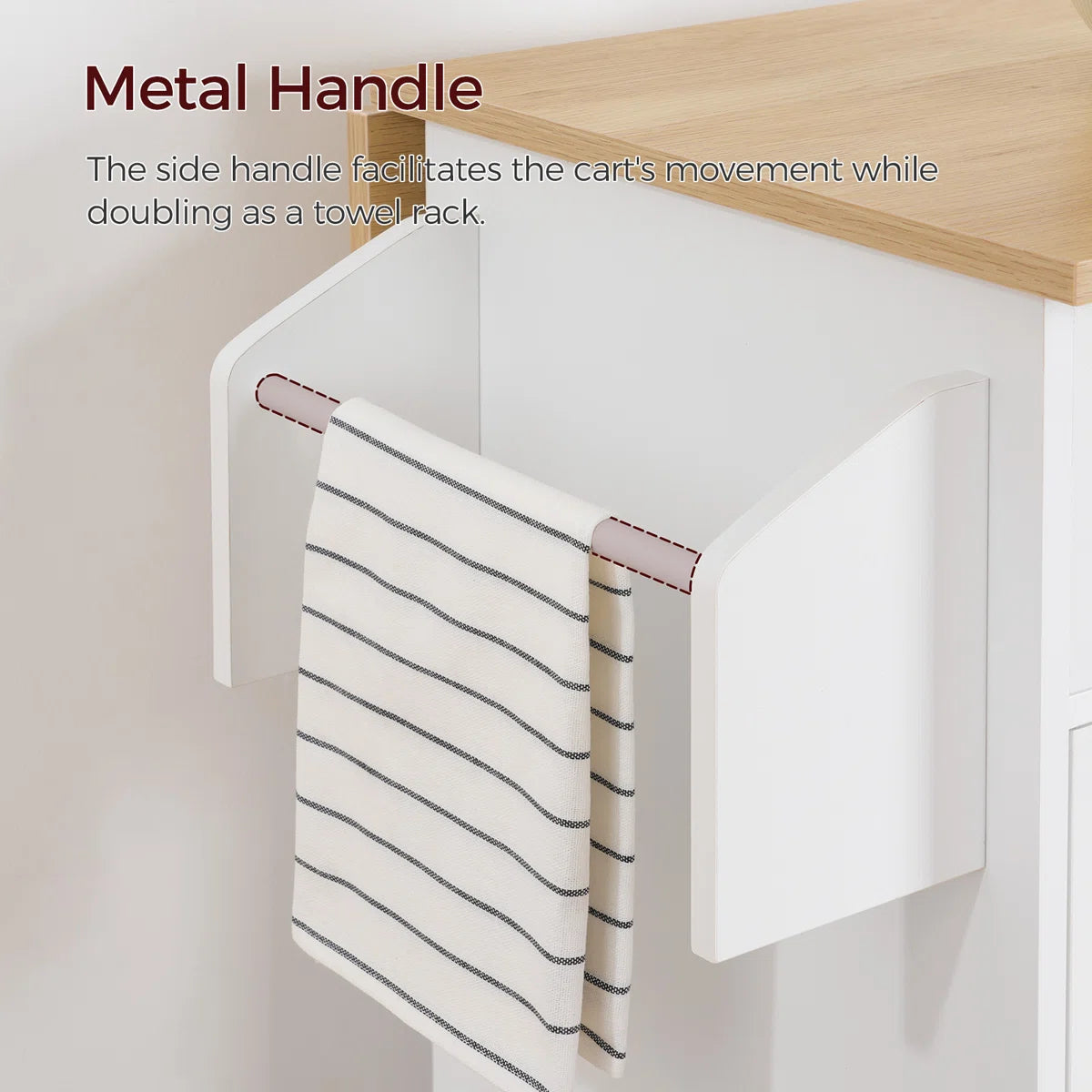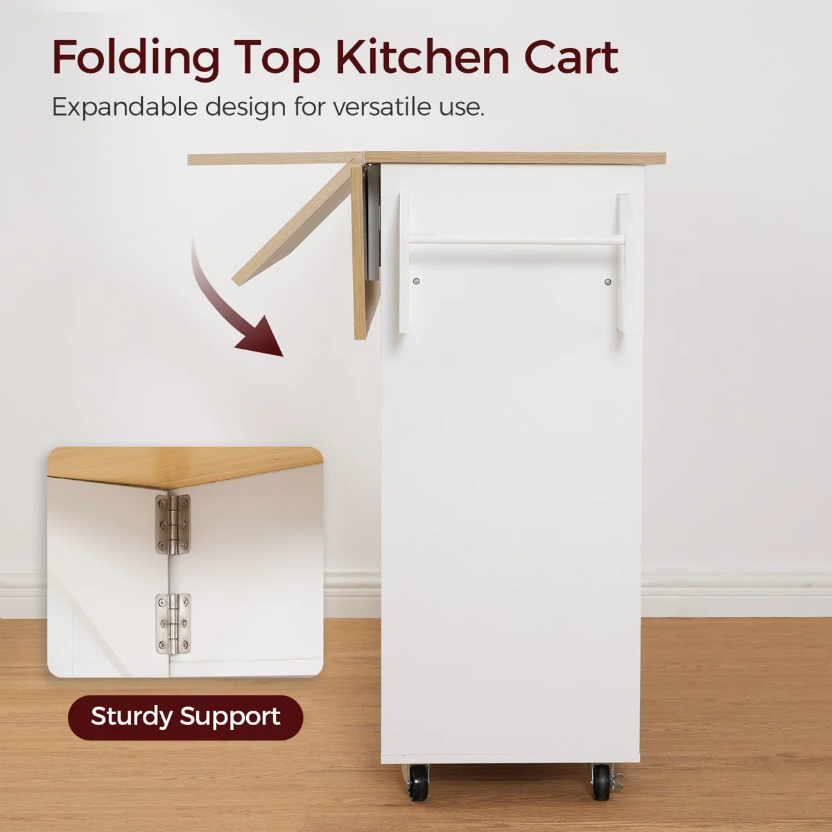 Enhance your kitchen’s efficiency and charm with this versatile foldable kitchen island. Designed with a spacious drop-leaf tabletop, ample storage, and smooth-rolling wheels, this cart is a perfect blend of utility and elegance. Whether you’re preparing meals, storing essentials, or dining, it adapts seamlessly to your needs while adding a warm, modern touch to your home décor.