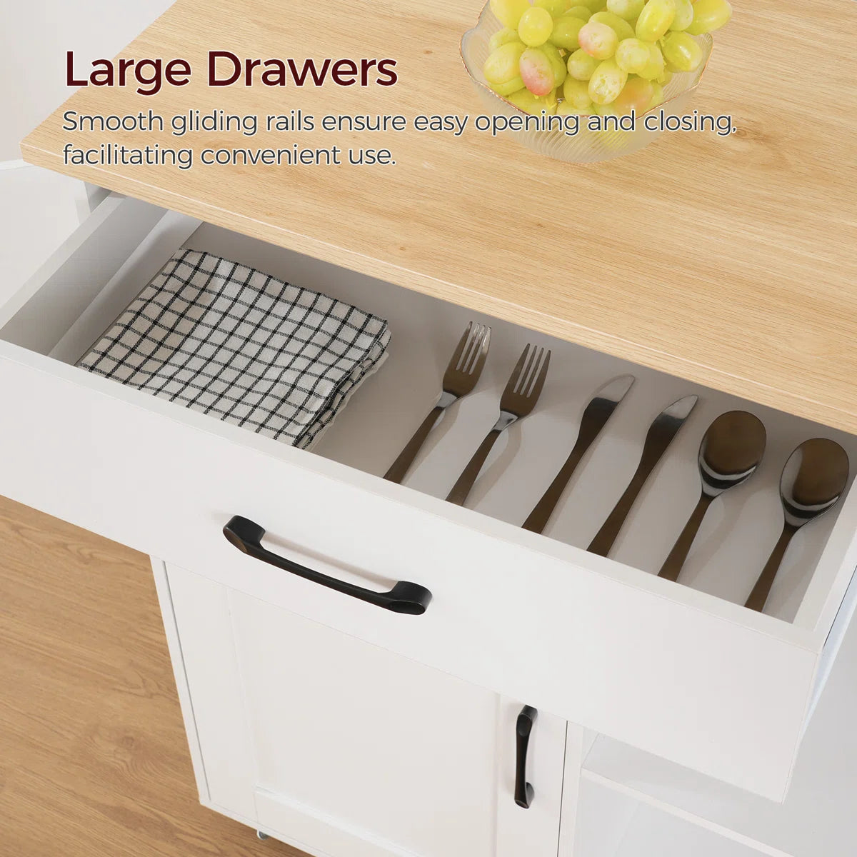 Kitchen Island Table: 52.8'' Foldable Kitchen Cart with Storage, Drawers, and Casters