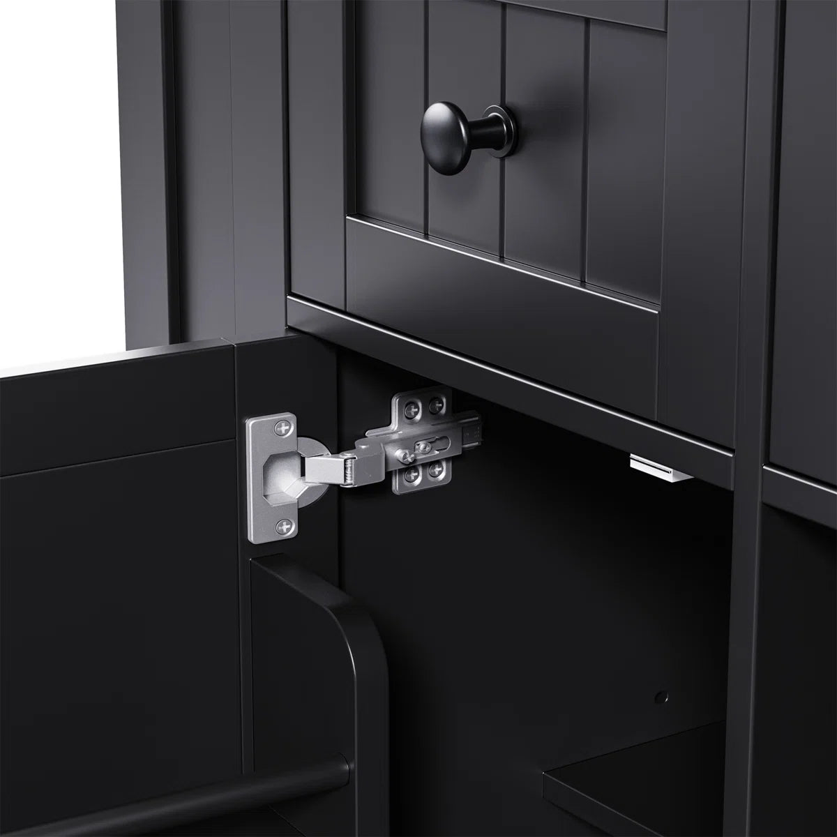 • 3 drawers, 2 cabinets, and 2 open side shelves offer ample storage options