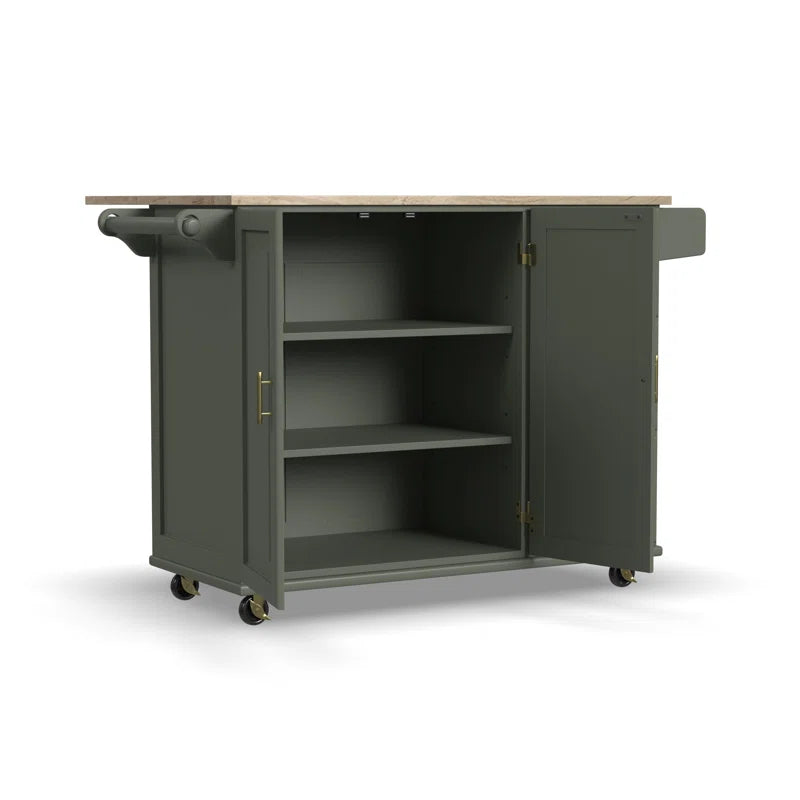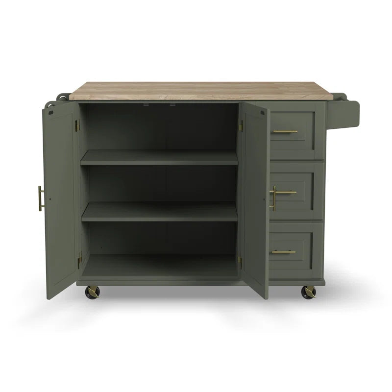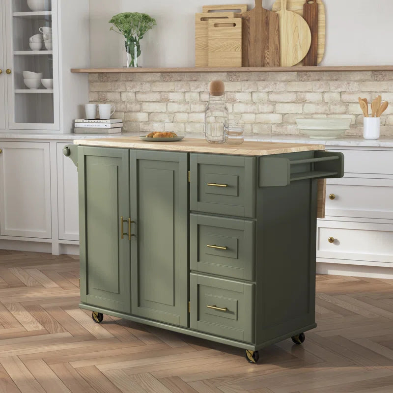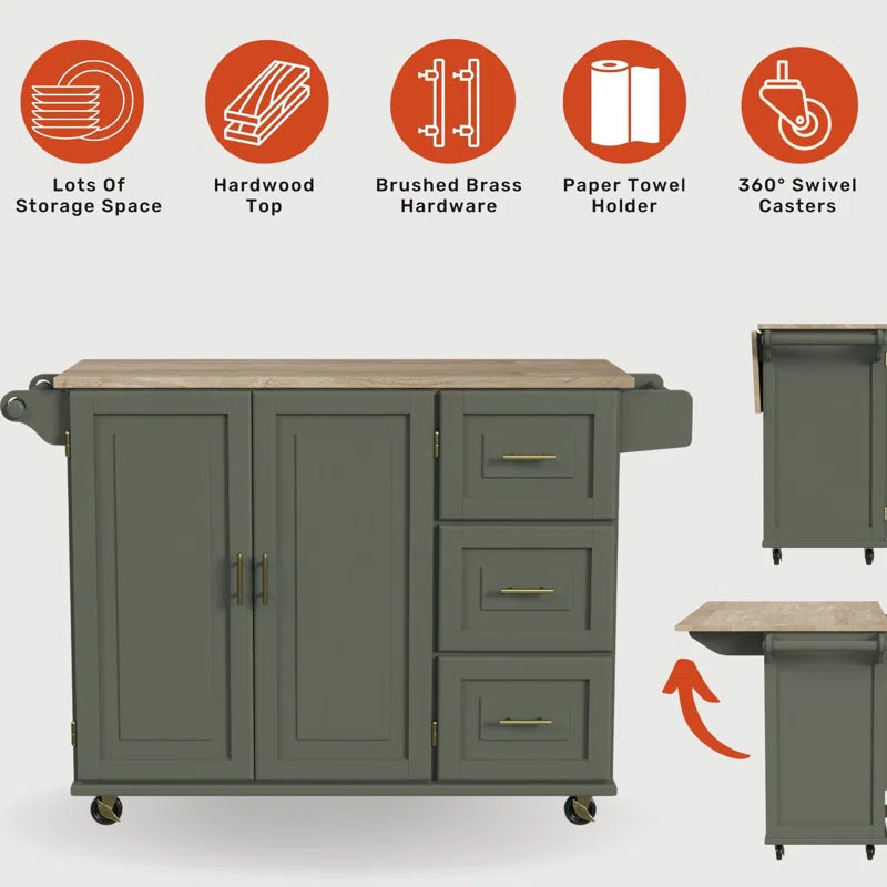 Kitchen Island Table: 53.5'' Wide Classic Wooden Rolling Cart with Drop Leaf & Ample Storage
