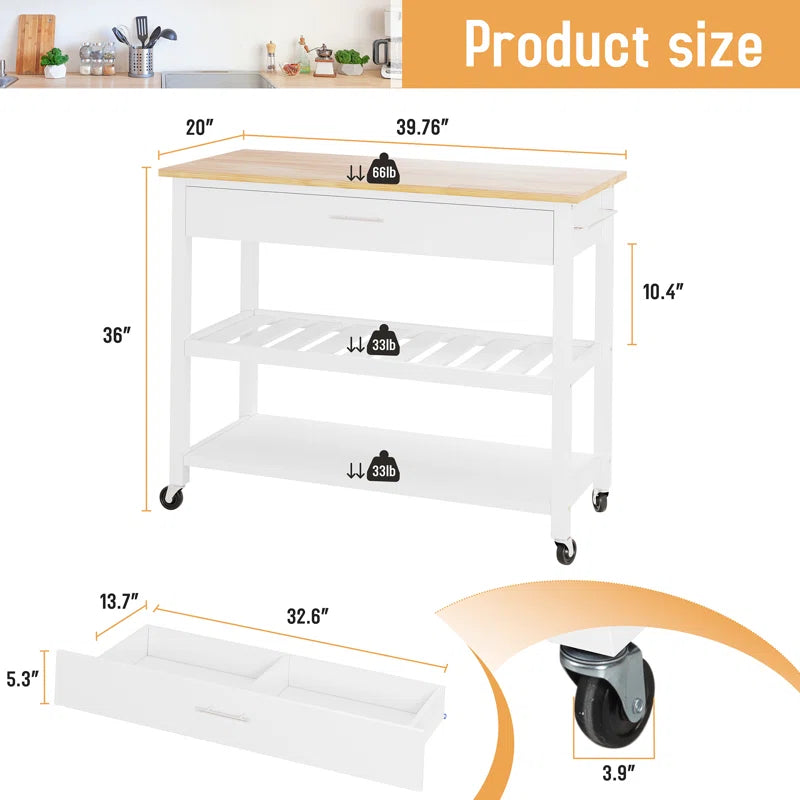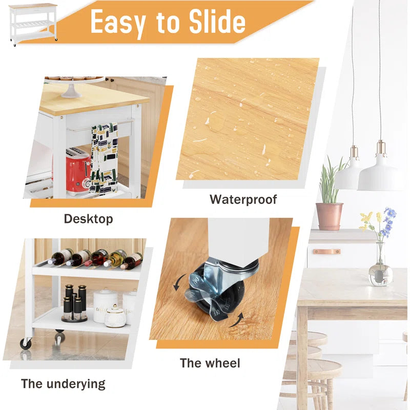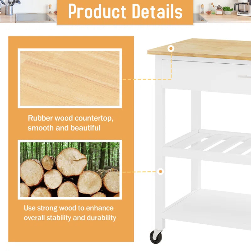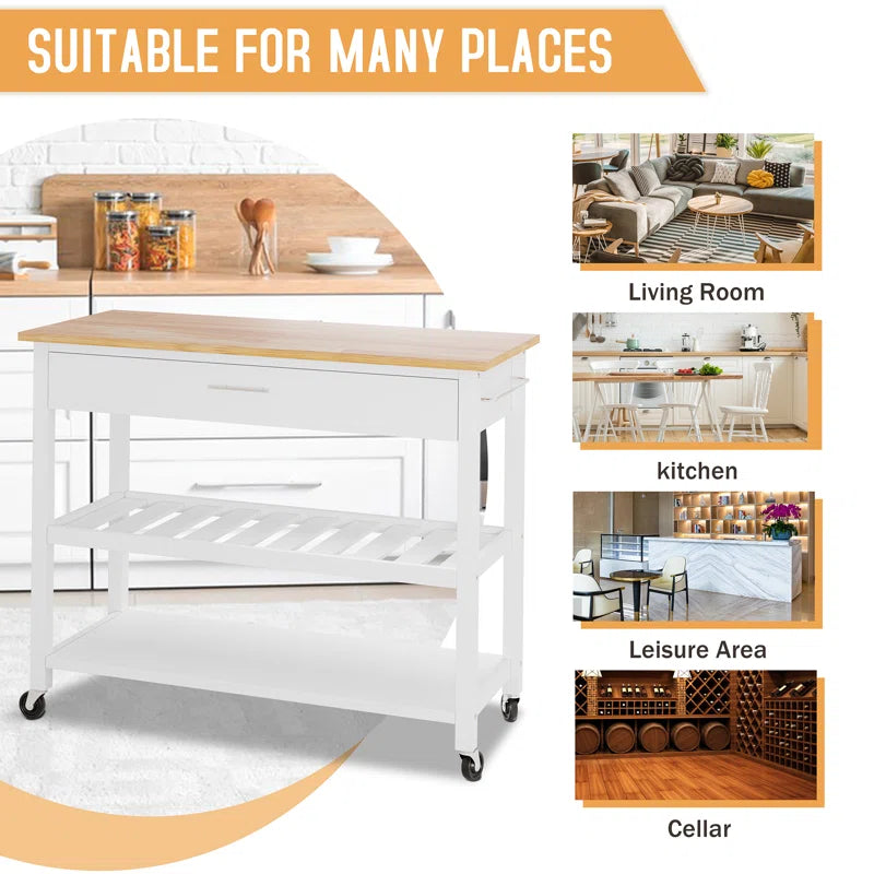 Kitchen Island Table: Compact Wooden Rolling Cart with Drawers, Racks & Wheels