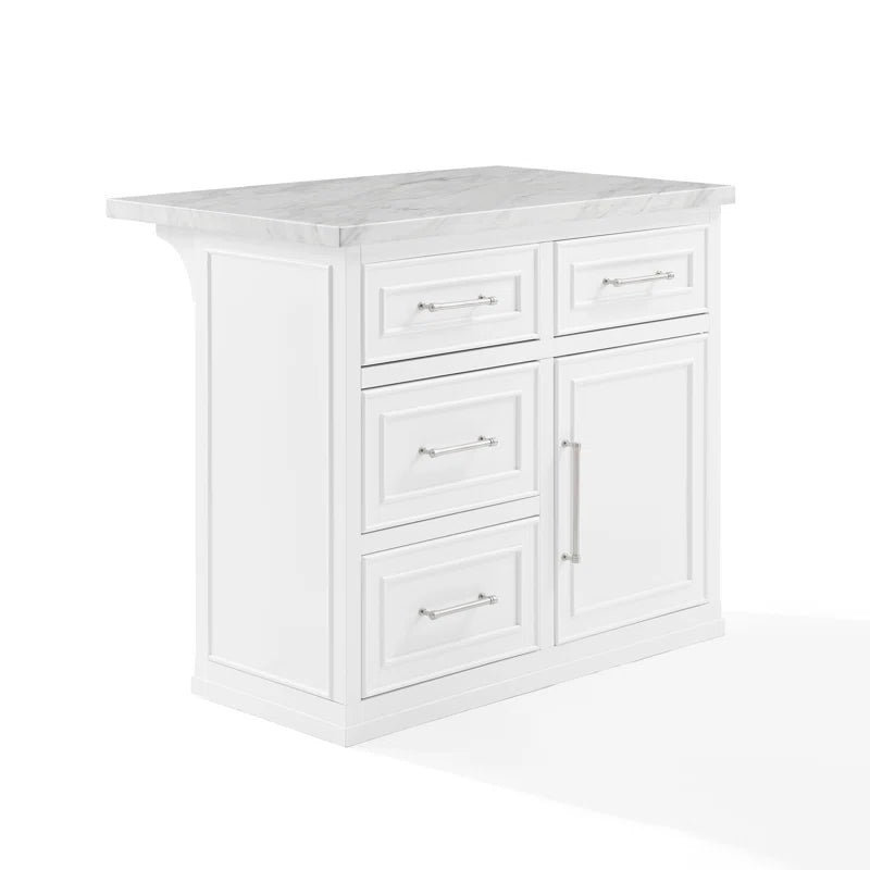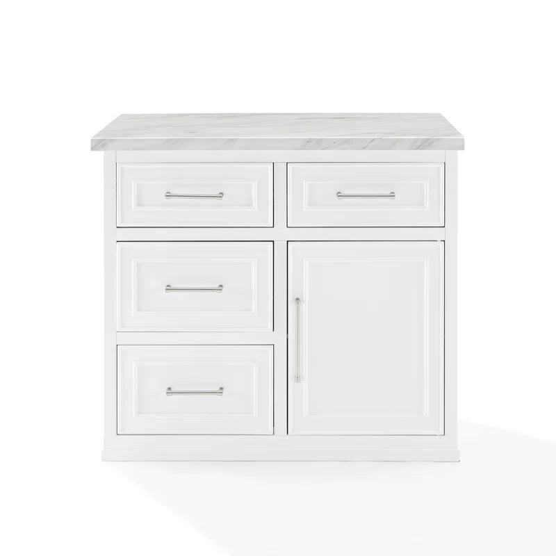 Kitchen Island Table: Cutler Kitchen Island with Faux Marble Top, 4 Drawers & Cabinet